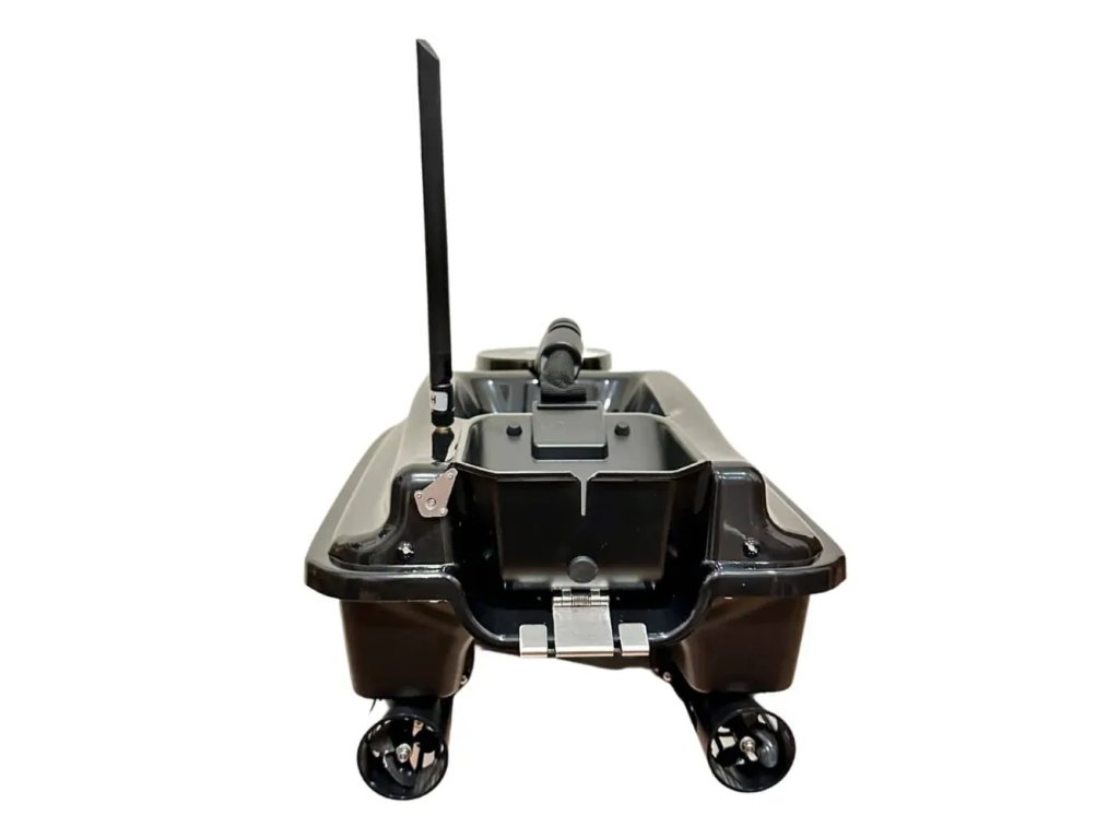 ve středu lodi, které pojmou přibližně 1000 g suché návnady. Zadní přihrádka pojme 500 g. Stiskneme uvolňovací tlačítko na dálkovém ovladači a poklop se otevře, v případě potřeby současně uvolníme vlasec a návnadu.