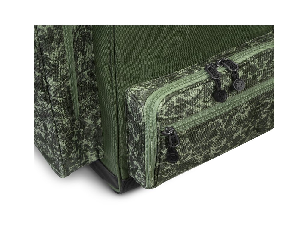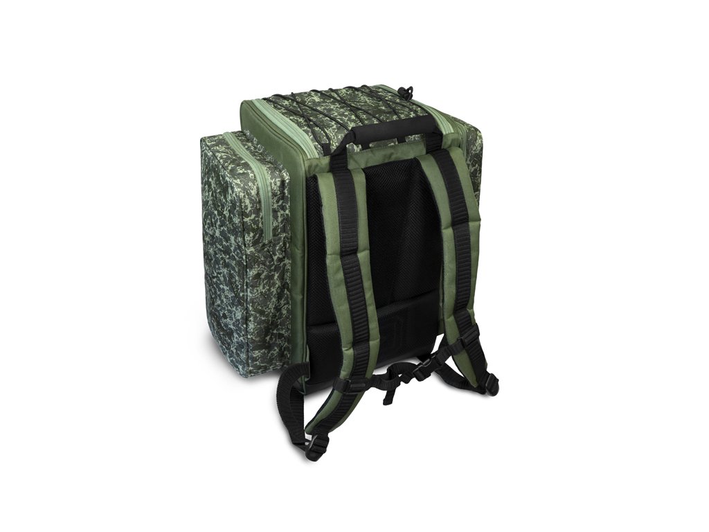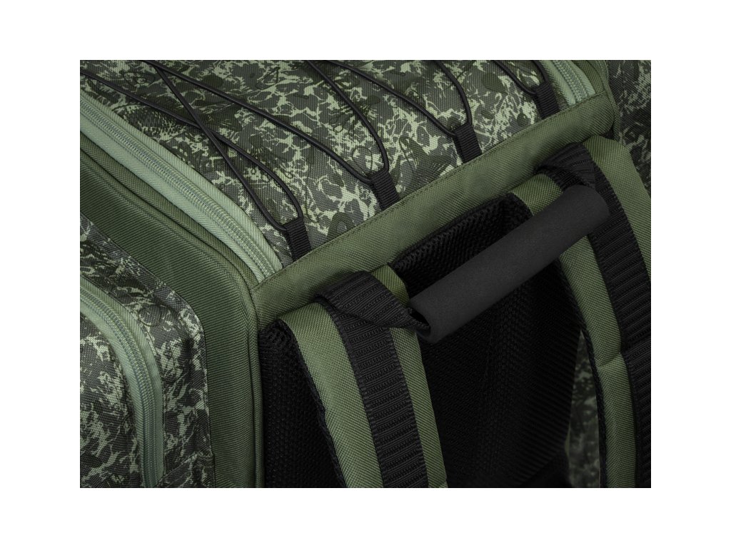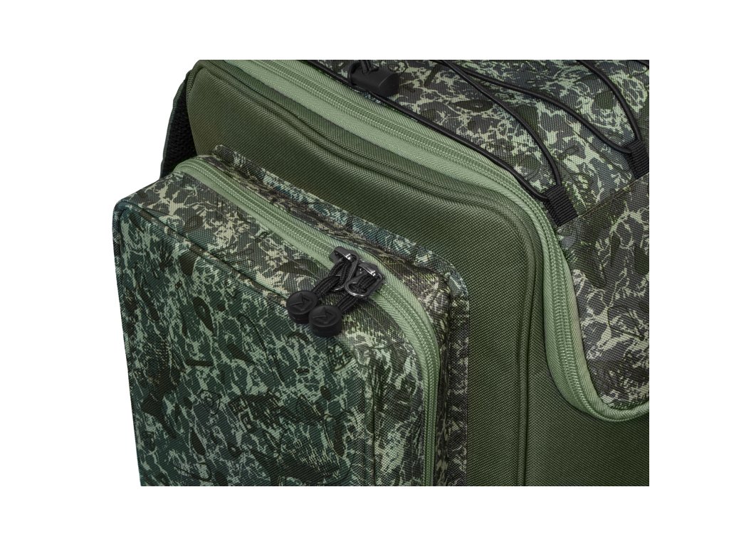 Delphin SPACE je označení pro exkluzivní sérii tašek z dílny značky Delphin. Vyznačuje se špičkovým zpracováním, kvalitními zipy, ale zejména výjimečným designem s použitím C2G kamufláže. Delphin Carper provedení C2G je vysoce praktický rybářský batoh, který byl navržen tak, aby do něj mohli rybáři vkládat všechny potřebné věci a následně je pohodlně odnést na zádech. Mnozí z vás se při výpravách za rybami musí přemístit na svůj hotspot pěšky i několik kilometrů. A přesně tento batoh vám to umožní. Vyztužená zádová část a délkově nastavitelné ramenní popruhy zajišťují maximální komfort během nošení. Ramenní popruhy lze navíc sepnout k sobě pomocí integrovaného popruhu s plastovým klipem. Batoh je ze všech stran důkladně polstrován 6mm pěnovou vložkou pro maximální ochranu vašeho příslušenství uvnitř. To přispívá i k tomu, že je mimořádně stabilní a drží si svůj tvar i v případě, že je prázdný. Celá spodní část a boky do výšky až 5 cm jsou opatřeny odolným nepromokavým materiálem, což dovoluje položení na mokrý povrch bez obav o znehodnocení produktu. Na obou stranách jsou umístěny dvě objemné kapsy a vepředu se nachází jedna menší dvoukapsa. Devizou je také stahovatelný gumový popruh na vrchu batohu, který umožňuje upevnění například bundy, mikiny, či menší srolovatelné podložky. CARPER je vybaven kvalitními zipy, které jsou opatřeny plastovými taháčky s logem značky Delphin. Technické parametry: Celkový rozměr včetně kapes ŠxVxH: 45x45x30cm Rozměr hlavní části batohu ŠxVxH: 25x45x25cm Rozměr přední kapsa ŠxVxH: 20x15x4cm Rozměr boční kapsy ŠxVxH: 20x38x7cm Stylová patentovaná kamufláž z dílny značky Delphin pod označením C2G má mnoho podob a úhlů pohledu. Přesně tak i její název, který můžeme volně přeložit jako Carpath 2. generace, což přímo odkazuje na jejího předchůdce, ale můžeme ho číst i jako Carpath to Green, tedy přechod myšlenky Carpathu do zelené barvy. Její jedinečnost a nezaměnitelnost spočívá v prvcích, ze kterých je vytvořena. Na první dojem jde o kamufláž tvořenou třemi různými odstíny zelené. Všechno se však změní při detailnějším pohledu, kdy si všimnete siluety kaprů, komponent kaprařské montáže a log značky Delphin spolu s označením C2G. Díky tomuto neopakovatelnému provedení se vaše rybářská výbava okamžitě stane jedinečnou a maximálně originální.Doplňkové parametry