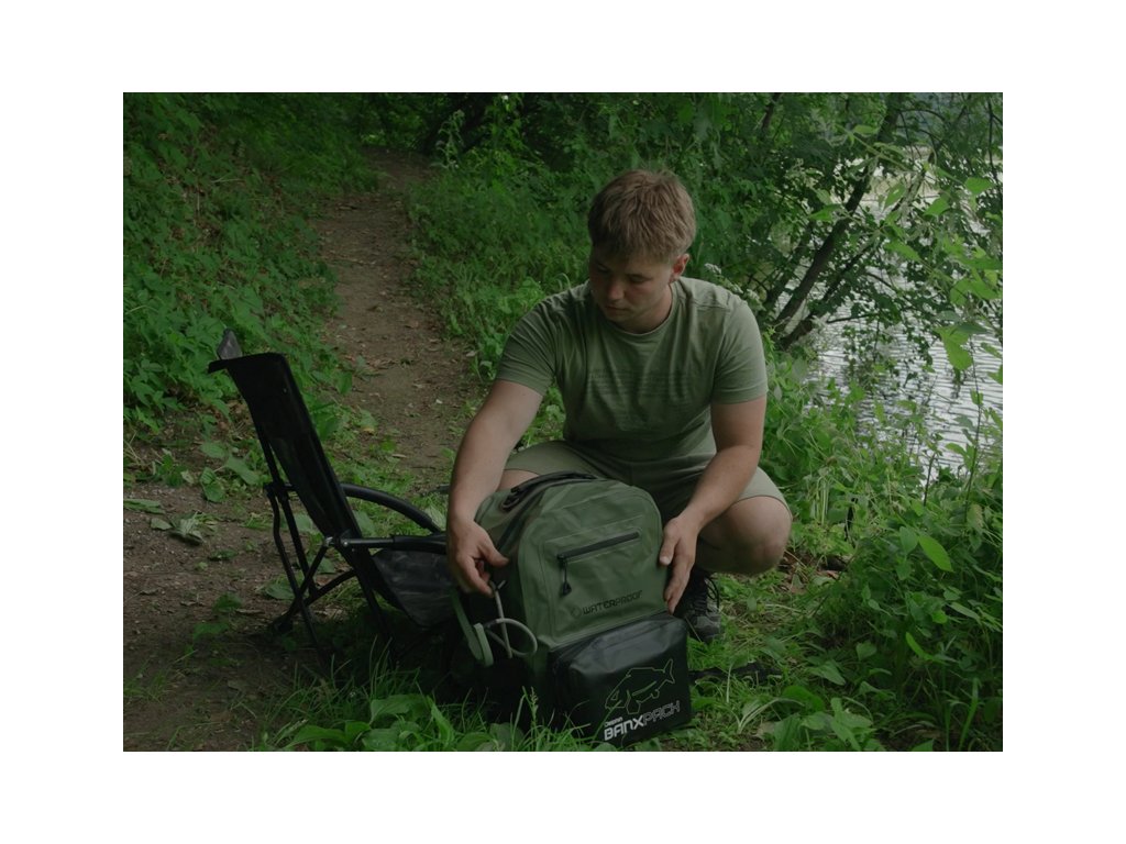 Delphin BanxPACK XL je voděodolný batoh, který spolehlivě ochrání uložené oblečení nebo rybářské náčiní před nepříznivým počasím i vydatnými dešťovými srážkami. Je vyroben z voděodolného EVA materiálu, který je zároveň snadný pro údržbu. To znamená, že v případě zašpinění stačí povrch přetřít hadříkem a za pár minut je suchý. Pokud se vám uvnitř vylije tekutina nebo atraktor, jednoduše ji vylijete a vnitřek snadno vyčistíte. Batoh nabízí prostorný hlavní úložný prostor, který doplňují praktické boční a přední kapsy. Díky velkému objemu do něj bez problémů uložíte boxy různých velikostí, oblečení či jiného vybavení, které chcete udržet v suchu. Po bocích se nacházejí kapsy vhodné například na láhev s vodou nebo vidličky. Na přední straně najdete dvě kapsy – menší na rybářské doklady, klíče nebo peněženku a větší, ideální pro uložení menšího organizéru. Všechny kapsy jsou opatřeny voděodolnými zipy s kvalitními běžci, které zaručují, že vaše vybavení zůstane v suchu. Pohodlí a komfort při transportu umocňují nastavitelné ramenní popruhy spolu s měkčenou výztuhou zad. Pro snadný úchop je na vrchní straně pogumované držadlo a po bocích jsou dvě plastová oka, za která si můžete připnout karabinu například s podběrákem. Decentní zeleno černý design doplňují funkční prvky jako taháčky na běžcích zipu nebo designové detaily, jako je například logo s originálním motivem kapra – OutLine. Přestože OutLine logo potěší spoustu kaprařů, své využití nepochybně najde napříč všemi rybolovnými technikami, ale i při jiných outdoorových aktivitách. Technické parametry: Objem: 27L Rozměry: 45x30x20cm Rozměr přední kapsy: 25x20x5cmDoplňkové parametry