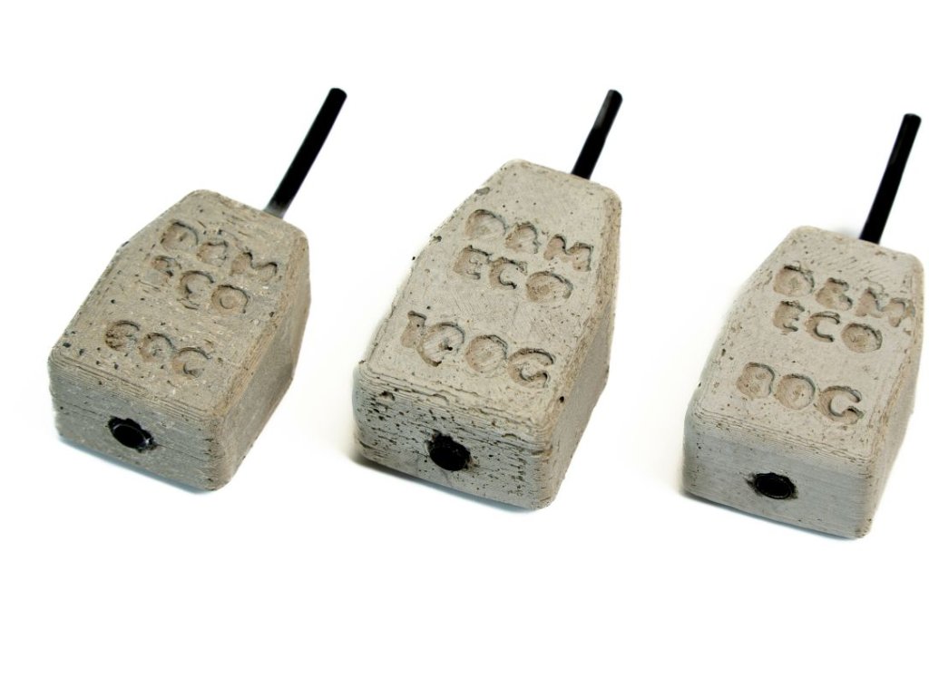 Železo betónové záťaže ECO Sinkers majú vyšší objem hmotnosti na cm3 ako iné konkurenčné alternatívy klasických olovených záťaží, takže sú menšie a dobre prispôsobené na využitie v rôznych podmienkach.
