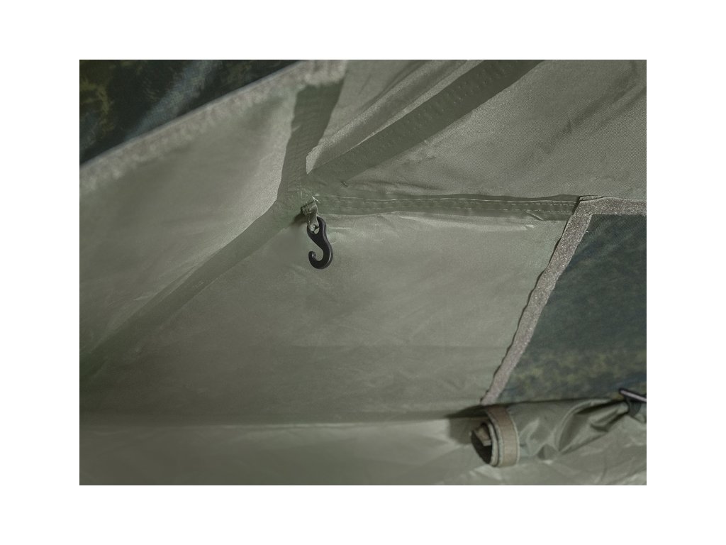 Pokud hledáte bivak, poskytující grandiózní prostor a královský komfort během vašich rybářských výprav, tak byste určitě neměli přehlédnout CUBICON AirSPACE C2G. Jedná se o model, jehož základem je stabilní, částečně teleskopická konstrukce, navržená tak, aby umožňovala co nejjednodušší a nejrychlejší rozložení, resp. složení přístřešku. Právě to bývá kamenem úrazu při rozměrově velkých bivacích, kdy samotné rozkládání zabere spoustu času a často jsou k tomu zapotřebí alespoň dva rybáři. V případě CUBICONU ovšem nic z toho neplatí a bez problémů si s tím za pár minut poradí i méně zkušený rybář. To ovšem není jediné překvapení, které tento bivak v sobě ukrývá. Mile překvapí také svými kompaktními transportními rozměry v poměru k rozměrům v rozloženém stavu. Tyto aspekty zaručí, že si ho s sebou nebudete brávat k vodě jen na dlouhé, několikadenní výpravy, ale také na kratší vycházky. Vnitřní prostor je ideální pro dvě lehátka, přičemž stále zůstane uvnitř velkorysý prostor pro pohyb, ale také pro tašky a další komponenty výbavy potřebné pro pohodlný pobyt u vody. V případě potřeby pojme vnitřní prostor dokonce až 3 lehátka. To ovšem neznamená, že CUBICON je vhodný pouze jako „ložnice“. Právě naopak! Díky svým parametrům a výšce až 190 cm si jistě najde u množství rybářů využití jako denní přístřešek, kde budete trávit čas či vařit během dlouhých výprav. Jedná se tedy o opravdu univerzální přístřešek a je jen na vás, jakým způsobem jej využijete. Velkou devizou je důkladně navržený větrací systém, sestávající z několika oken a překrytí, resp. „stříšky“ bivaku. Rozměrné moskytiérové okno je umístěno na předním i zadním panelu, přičemž čtyři menší okna jsou umístěna přímo na stropě bivaku. Díky tomuto důmyslnému systému lze zajistit cirkulaci vzduchu ve vnitřním prostoru i v době, kdy nelze větrat pomocí velkých oken. Určitě jej oceníte zejména v noci, kdy výrazně napomáhá snižovat kondenzaci na vnitřních stěnách. Součástí samotné stříšky je i velký kšilt, který vytváří dodatečnou ochranu před sluncem a deštěm. Stříška je ke konstrukci upevněna množstvím úchytů tak, aby byla co nejvíce eliminována možnost podfouknutí při silnějším větru. Ke stabilitě ve větrném počasí přispívají také 4 stabilizační šňůry a kolíky, které jsou součástí balení. CUBICON má v balení automaticky základní podlahu, která je fixována kvalitním zipem po celém obvodu. Nežádoucí návštěvy hlodavců či nečistoty pronikající dovnitř bivaků tak budou už jen minulostí! Technické parametry: Vnějšek. rozměr: 270x270cm Výška: 190cm Délka kšiltu: 40cm Transp. rozměry: 123x23x23cm Hmotnost: 12,8kgDoplňkové parametry