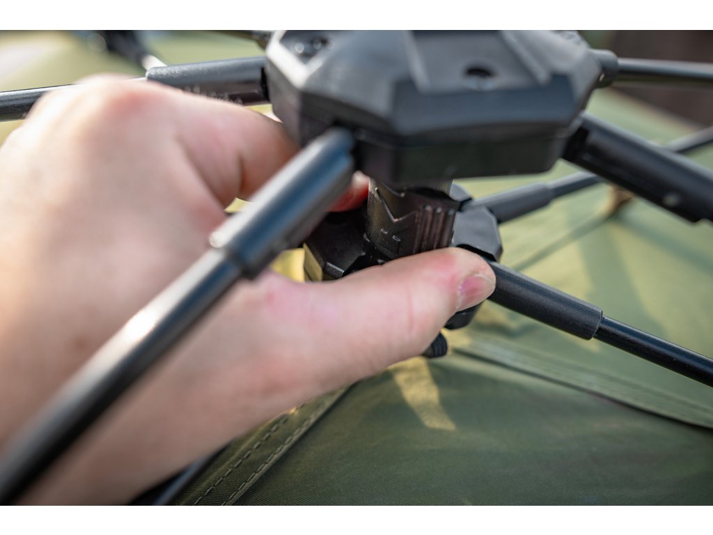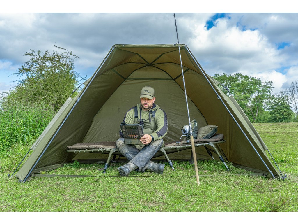 Vynikající volba pro mobilní rybáře, který poskytuje dostatečné krytí pro noční rybolov. Jedinečný blok Speed Block se jednoduše zasune a lze jej uzamknout pomocí vačkového spínače. Používá materiál 150D PU Flex s voděodolností 5 000 mm a prodyšností. Dodává se se dvěma lehkými tyčemi Storm Pole a zesílenými kotvícími kolíky.