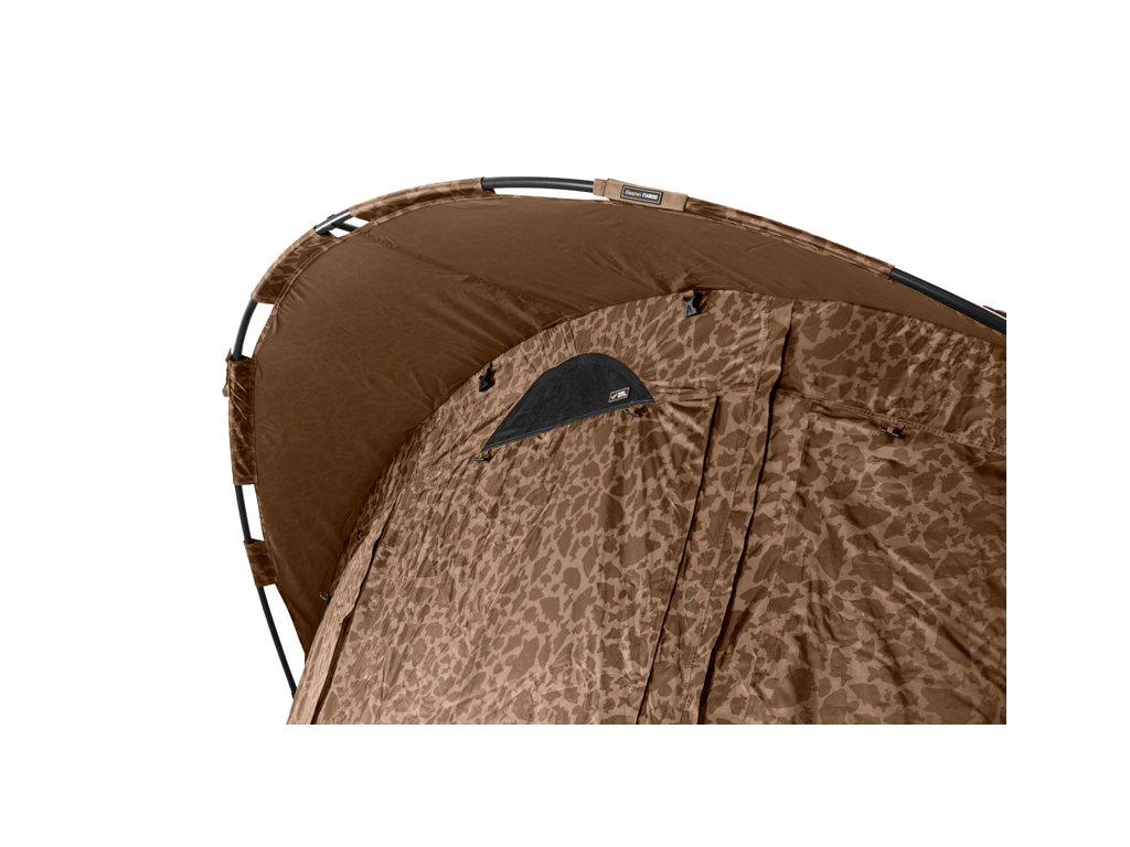 Vlajková loď v segmentu bivaků od společnosti Delphin. To je bivak C-3 LUX CARPATH, který je určen těm nejnáročnějším rybářům mezi námi. Extra pevná garážová konstrukce se třemi žebry zaručuje nekompromisní stabilitu v jakýchkoliv povětrnostních podmínkách. Spolu s použitou látkou nejvyšší kvality a kompletně podlepenými švy odolá i silným bouřím, větru a vydatnému množství srážek. Nespornou předností bivaku je látka s oblíbeným vzorem CARPATH, což určitě nadchne všechny příznivce této originální kamufláže. Díky rozměrům bivaku se do něj bez problémů vejdou 2 lehátka, přičemž stále zůstane uvnitř velkorysý prostor pro pohyb, ale také na tašky a další komponenty výbavy potřebné pro pohodlný pobyt u vody. V případě potřeby pojme vnitřní prostor dokonce až 3 lehátka. Samozřejmostí jsou také dva úchyty na zafixování prutů, ale také velký kšilt, který poskytuje ochranu před sluncem či deštěm. Uvnitř jsou na stropě bivaku navíc umístěny 2 háčky, na které je možné zavěsit například lampu. Bivak C-3 disponuje inovativním systémem CLIMA CONTROL, který byl navržen designérským oddělením značky Delphin. Tento systém je tvořen dvěma větráky na protilehlých stranách (nad vstupními dveřmi a nad zadním oknem). Díky tomuto důmyslnému systému lze zajistit cirkulaci vzduchu ve vnitřním prostoru bivaku v době, kdy není možné větrat pomocí velkých oken. Určitě ho oceníte zejména v noci, kdy výrazně napomáhá snižovat kondenzaci na vnitřních stěnách. Celý systém je navíc jednoduše ovladatelný zevnitř bivaku. K bivaku C-3 je možné dokoupit sadu předních plastových překrytí oken (které jsou standardně moskytiérové s látkovým překrytím), v transparentním provedení. Také je možnost zakoupení přehozu, který zvýší tepelný odpor, a tím i izolační vlastnosti samotného pláště. Bivak má v balení automaticky základní podlahu, která je fixována kvalitním zipem po celém obvodu bivaku. Odteď nehrozí nechtěné návštěvy hlodavců, či nečistoty pronikající do bivaků! C-3 LUX CARPATH je bivak bez kompromisů, který uspokojí i ty nejnáročnější rybáře a díky kterému bude každý pobyt u vody maximálně komfortní. Technické parametry: Vnější rozměr: 300x320x175cm Výška bivaku: 175cm Délka kšiltu: 60cm Transp. rozměry bivaku: 130x30x30cm Hmotnost bivaku: 13kg Transp. rozměry přehozu: 60x20x20cm Hmotnost přehozu: 4kgDoplňkové parametry