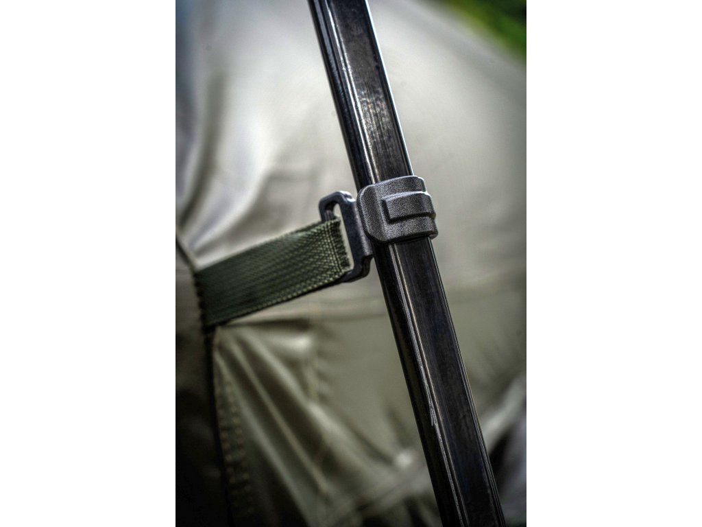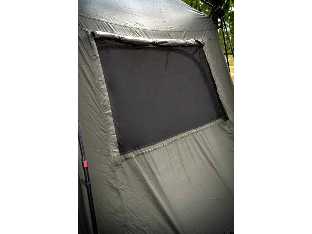 Prístrešok JRC Cocoon Basecamp sa dá ľahko postaviť jednou osobou a je vyrobený z ľahkého, plne vodotesného materiálu. Štyri rohové stabilizačné laná s vysokou viditeľnosťou sú dodávané s robustnými kolíkmi. Dva sieťované mozaikové panely ponúkajú chránené vetranie.