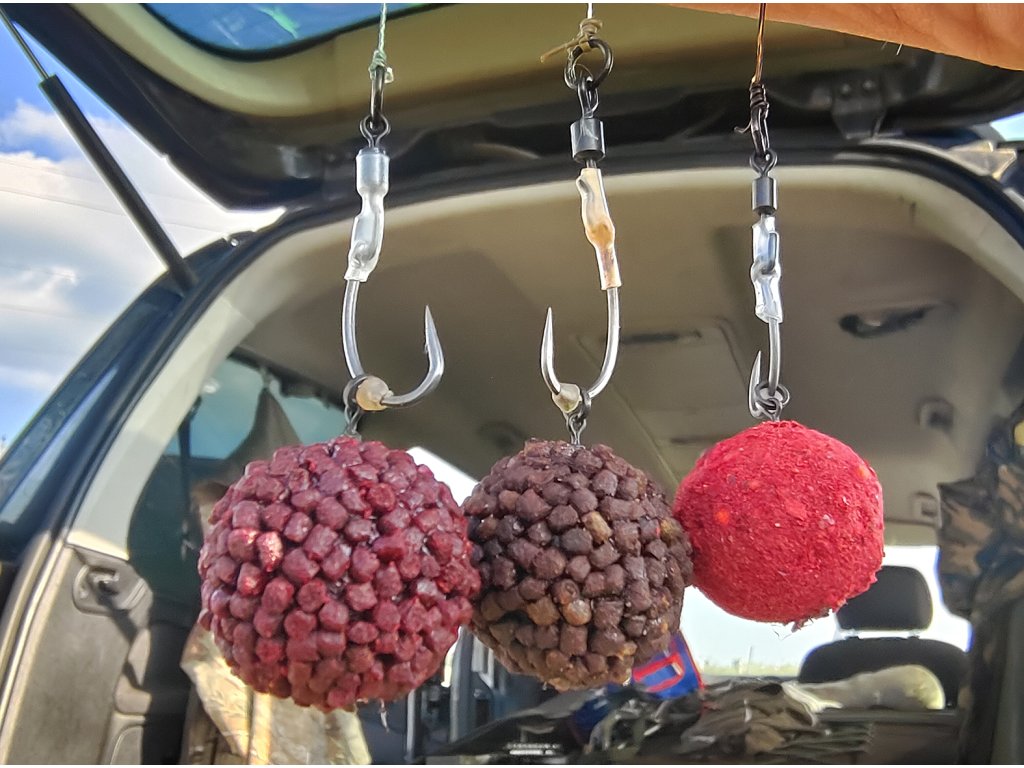 Potápivé boilí obalené betainovými peletkami, po nahození peletky měknou a odpadávají 1 až 2 hodiny.