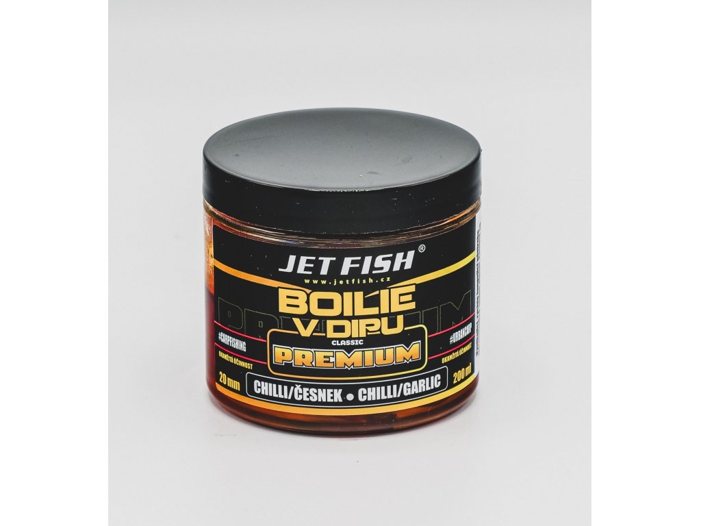 JET FISH Premium clasicc boilie v dipu 200ml - 20 mm : CHILLI / ČESNEK