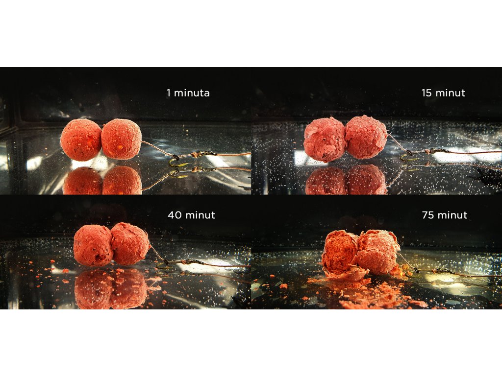 Doba rozpadu - rozpustnosti se liší a je závislá na teplotě vody, případně také aktivitě ryb ve vodě. V chladných měsících jsou to u průměru 24mm až 10h, v teplejší vodě něco kolem 5-7hodin.
