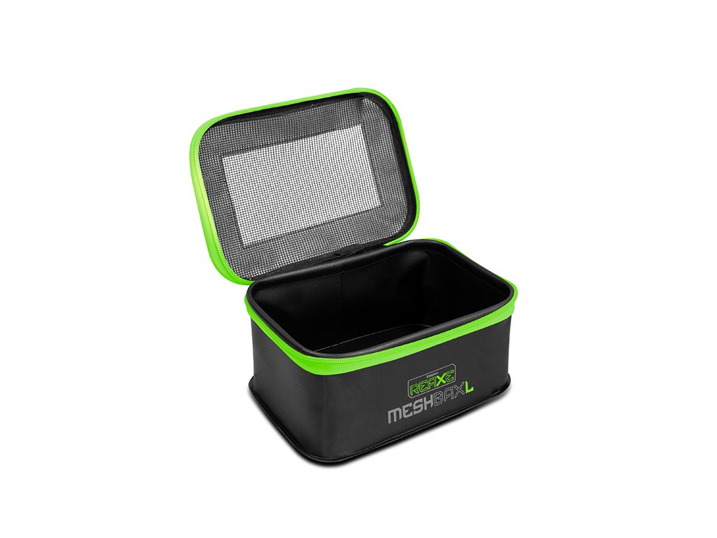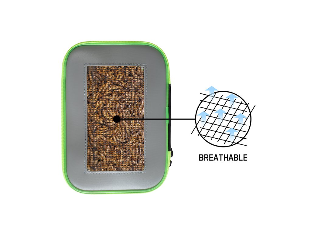 Praktická taška určená primárně pro kostní červy a jiné druhy živých návnad. Víko je tvořeno perforovanou černou síťkou, která zajistí červům dostatek vzduchu, zabrání přehřívání a tím udrží vaši návnadu déle živou a čerstvou. Taštička je černé barvy s šedým víkem, výrazným - dobře viditelným zipem, který ji dokonale uzavře a tím zamezí nechtěnému úniku červů. MeshBAX lze využít také jako univerzální tašku pro různé drobnější rybářské příslušenství či nástrahy, dipy a jiné komponenty. Produkt je vyroben z materiálu EVA, který je snadno omyvatelný a odolný vůči vodě i mechanickému poškození. Technické parametry: Rozměry: 22x15x10cmDoplňkové parametry