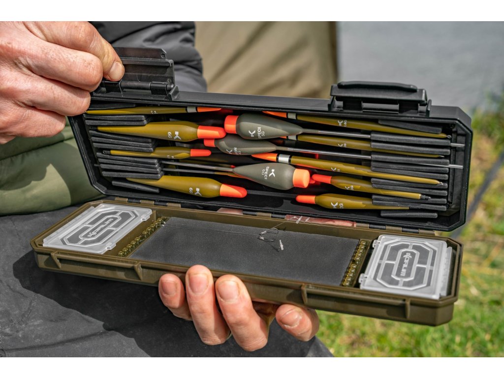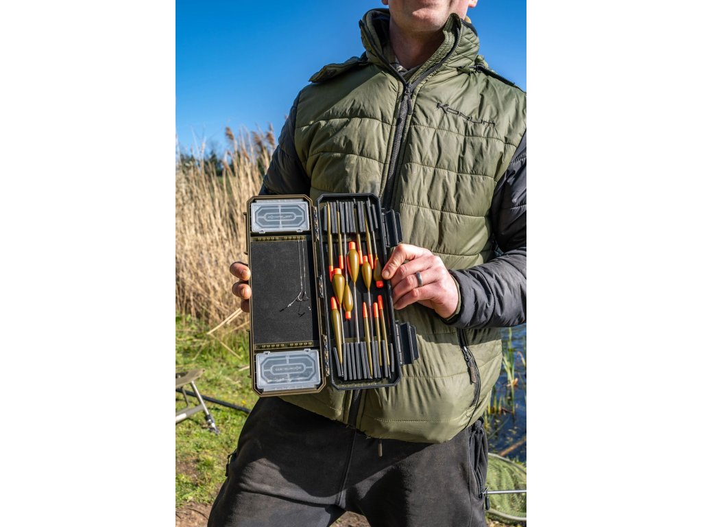 Float Blox má několik jedinečných funkcí, které poskytují pevný domov pro vaše splávky. Splávky jsou úhledně drženy na místě pomocí měkkého silikonového štěrbinového systému. Na protilehlé straně jsou přihrádky na torpily, silikonové hadičky a obratlíky. Součástí je dokonce i malý zásobník na návazce