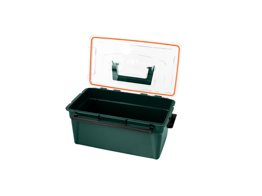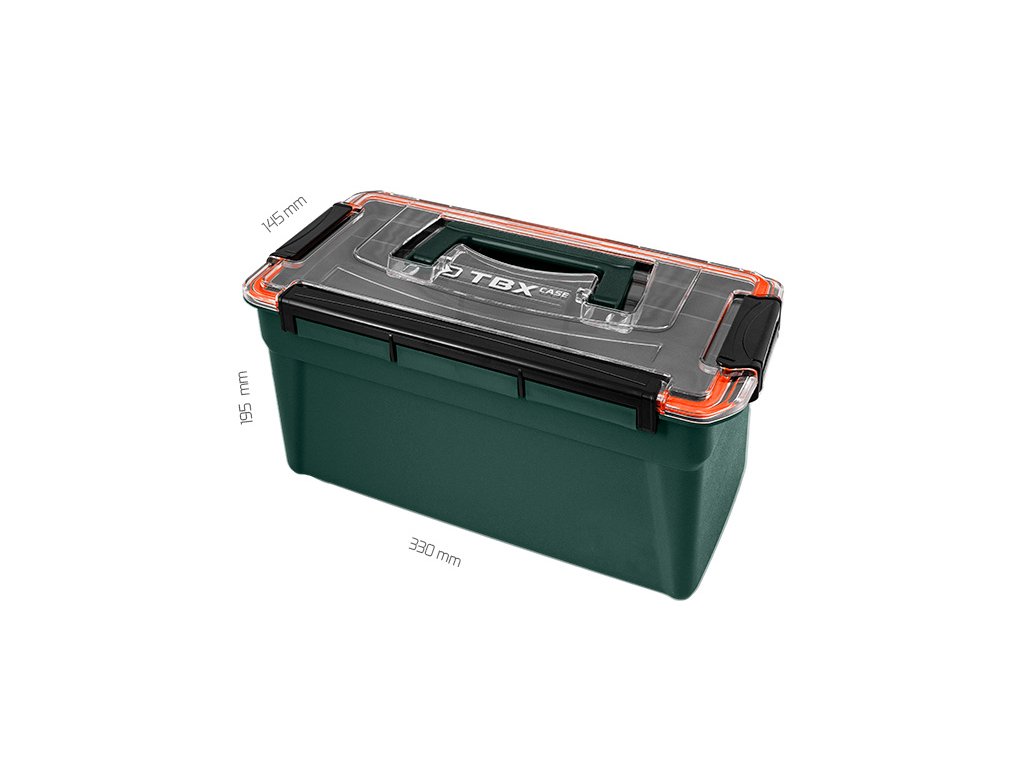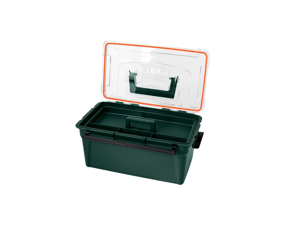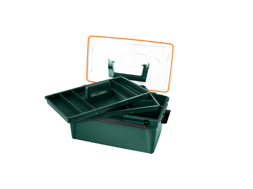 Kufřík Delphin TBX Case Clip je menších rozměrů, ale rozhodně praktičností nezaostává za těmi většími, které máme v nabídce. Skládá se ze tří odkládacích prostorů, z toho dva jsou vyjímatelné s praktickým úchopem. Celý kufřík je pevně fixován podélnými klipy v počtu 3ks, které zaručí bezpečnou přepravu nástrah nebo ostatního rybářského příslušenství. Je dodáván v tmavozelené barvě s transparentním víkem, které je vybaveno červenou těsnící gumou po celém jeho obvodu. Technické parametre: Rozmer: 330x195x145mm Počet pevných priehradiek: 10 Rozmer priehradky: 1x(29,5x16x7,5cm), 4x(15,2x2cm), 1x(11x15x2cm), 1x(28,5x11,5x2cm), 3x(3,5x9,5x2cm) Počet vkladateľných poličiek: 2Doplňkové parametry