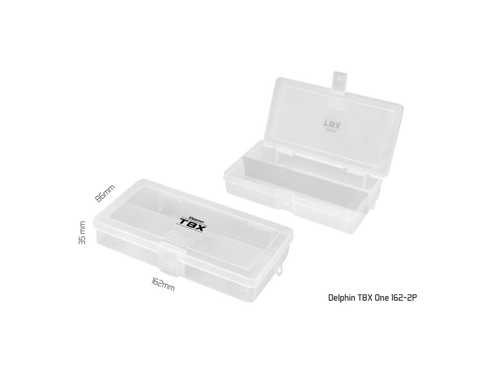 TBX ONE je řada multifunkčních krabiček určených pro uložení rybářského příslušenství. Vyrobené jsou z transparentního plastu, takže máte vždy dokonalý přehled o uložených věcech uvnitř krabičky. Řada TXB ONE je vybavena praktickými klipy z transparentního plastu. Technické parametre: Model: Delphin TBX One 162-2P Rozměr: 162x86x35mm Počet pevných přihrádek: 2 Rozměr přihrádky: 15,6x4x2,9cm Počet vkladatelných příčníků: 0 Model: Delphin TBX One 186-2P Rozměr: 186x98x35mm Počet pevných přihrádek: 2 Rozměr přihrádky: 18,1x4,5x3,0cm Počet vkladatelných příčníků: 0 Model: Delphin TBX One 214-2P Rozměr: 214x113x41mm Počet pevných přihrádek: 2 Rozměr přihrádky: 20,9x5,5x3,5cm Počet vkladatelných příčníků: 0Doplňkové parametry