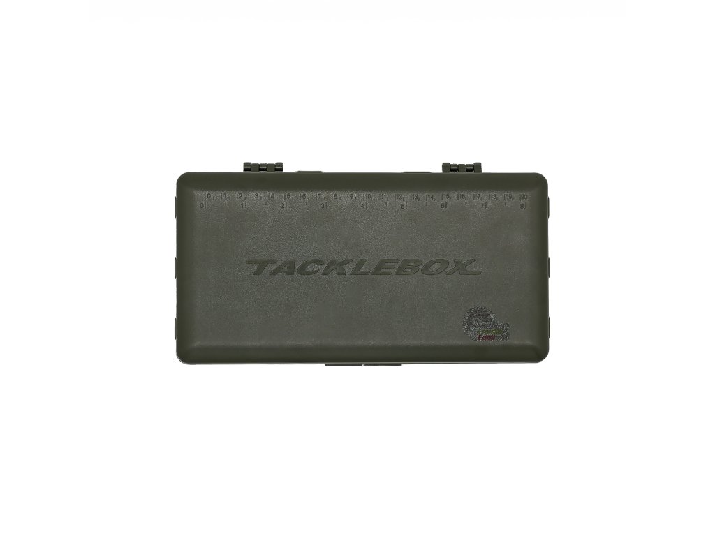 Veľkosť uzavretého tackle boxu 24 x 12 x 3 cm a otvoreného 24 x 24 x 2 cm.