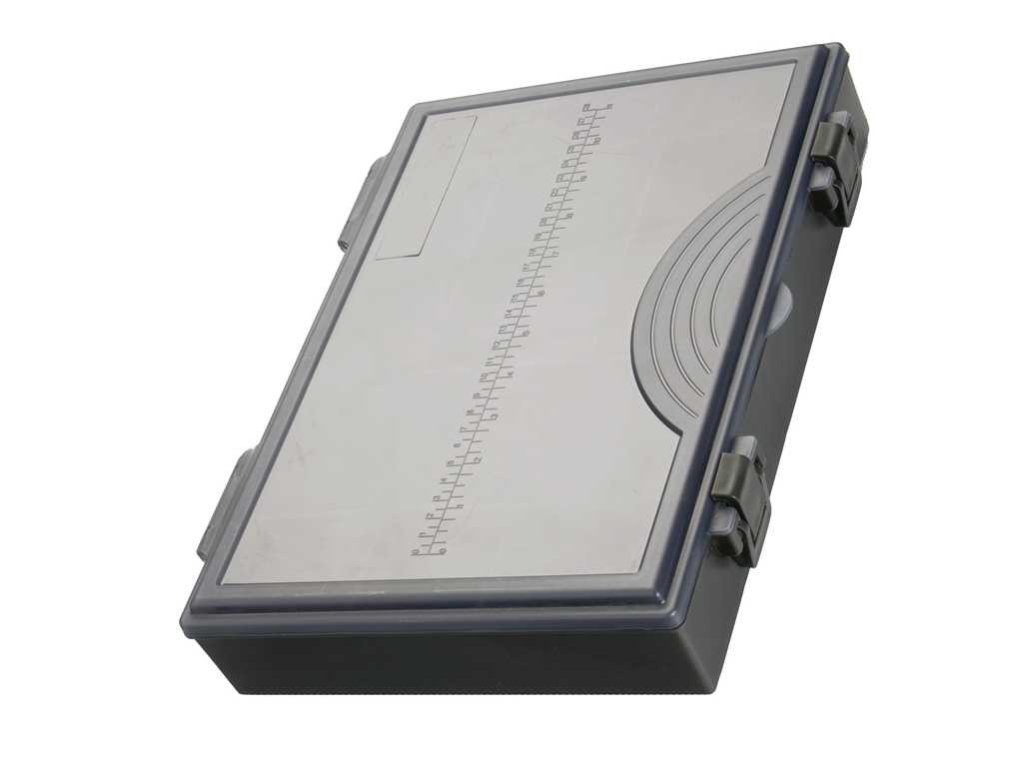 Prostorná kaprařská krabička na příslušenství z odolného plastu s posuvnými přihrádkami, která pojme i několik krabiček Mini.Doplňkové parametry