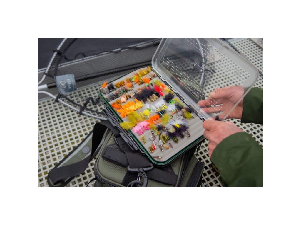 Krabička s polykarbonovým průhledným víčkem pro maximální přehled a výběr. Pevnost a vodě-odolnost řadí tento produkt k nejvyššímu hodnocení. Lze vybrat ze tří modelů a velikostí. Tato je obdařena jednou pěnou s výřezem pro vsazení jednotlivých mušek a druhou klasickou pěnou pro napíchutí mušek. Specifikace: - š x v x h: 210 x 300 x 43mmDoplňkové parametry