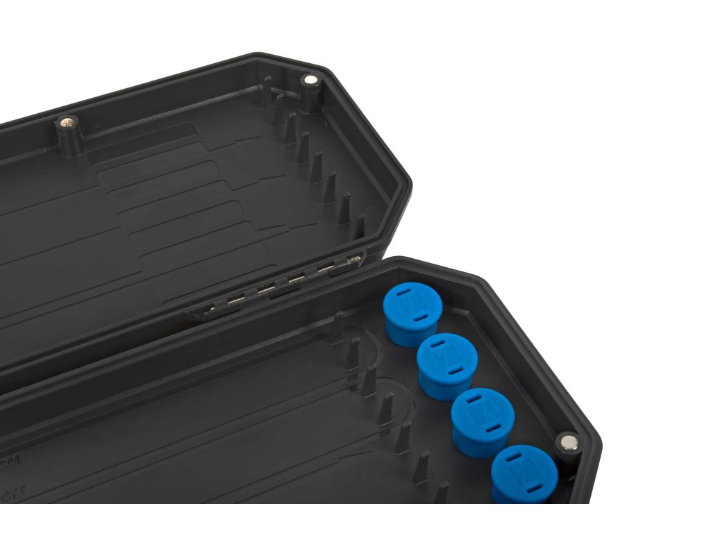 Obrovský zásobník na návazce určený pro uložení návazců o délce od 30 cm až do 1 m, tento univerzální zásobník vyhovuje požadavkům na lov na feeder i na plavanou. Je vybaven odnímatelnými měkkými chrániči vlasce z TPE, které umožňují skladovat délky návazců až do 1 m.