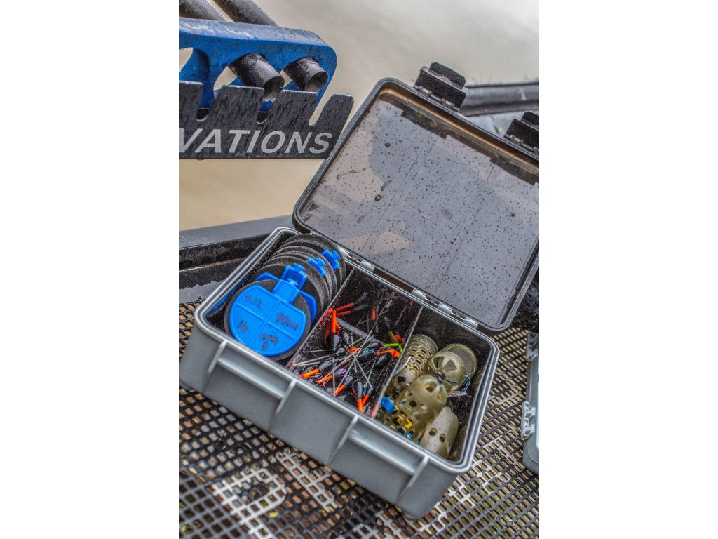 Ideální pro uchování širokého spektra doplňků a pomůcek od splávků po krmítka v bezpečí a pořádku. Uzavírání je vybaveno TPE těsněním, které pomáhá udržet obsah Hardcase Accessory boxu v suchu. Rozdělení na tři jednotlivé komory je pak ideální pro oddělení různých druhů krmítek nebo splávků, avšak přepážky mohou být vyjmuty pro uložení objemnějšího vybavení.