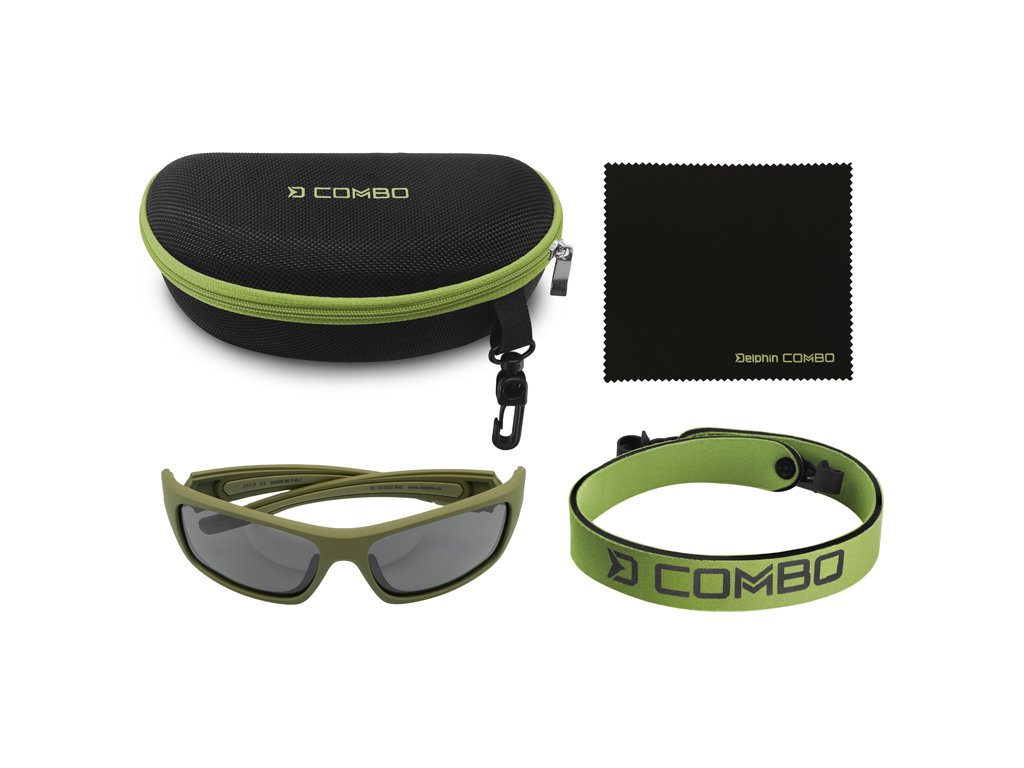 SG COMBO rozšiřuje nabídku slunečních brýlí o model, který v základu nenabízí jen samotné brýle, ale také velmi praktické příslušenství. Balení tak navíc obsahuje plovoucí popruh, hadřík na skla a tvrdé transportní pouzdro s háčkem pro upnutí. Brýle jsou navrženy v matné zelené barvě, díky čemuž jsou přímo ideální pro všechny rybáře, myslivce či outdoorové nadšence. Stylové provedení je však předurčuje i k běžnému nošení a využití při sportovních aktivitách. Kvalitní polarizační skla s UV filtrem poskytnou výbornou ochranu před slunečním zářením a zároveň vám pomohou odhalit ryby pod vodní hladinou. Pro komfortní nošení jsou ramínka a plošky dosedající na nos opatřeny pogumovanou vrstvou. Samotný rám je vyroben z velmi lehkého a odolného plastu, což také přispívá k pohodlí během nošení. Polarizační brýle Delphin jsou vysoce kvalitním produktem se všemi potřebnými certifikáty a zkouškami vyžadovanými Evropskou unií. To garantuje jejich zdravotní způsobilost a špičkové vlastnosti potvrzené mnoha testy. Technické parametry: Šířka nos: 2,3cm Rozměr skla: 6,3x4,4cm Délka ramínka: 13cmDoplňkové parametry