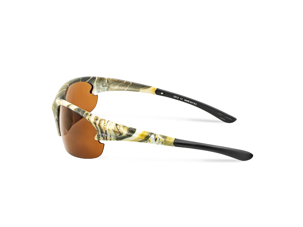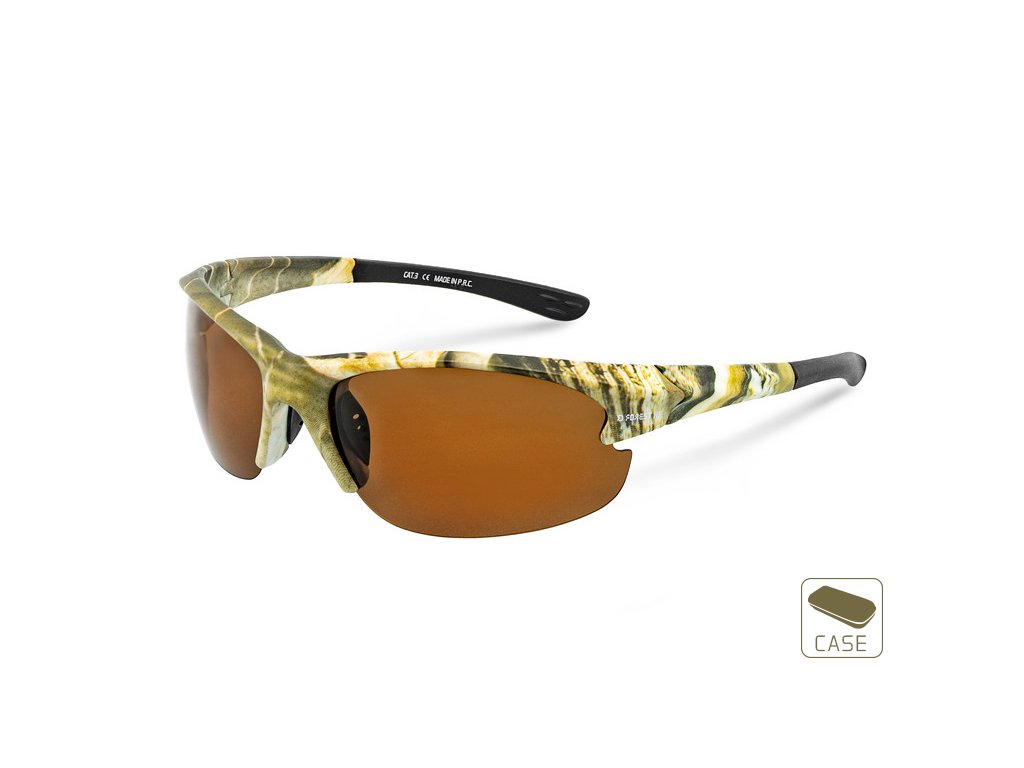 Polarizační brýle z řady SG FOREST v kamuflážovém provedení, které jsou přímo stvořené pro rybáře, či myslivce. Hnědé polarizační skla zaručují ochranu před slunečním zářením, ať už jste na lovu či procházce v přírodě. Označení HF (Half Frame) znamená, že rám brýlí není kolem celých skel, což značně redukuje jejich hmotnost. K nízké hmotnosti a pohodlnému nošení přispívá také velmi lehký a odolný materiál, ze kterého jsou vyrobeny. Brýle SG FOREST jsou zabaleny a dodávány v pevném pouzdře se stylovou kamufláží. Polarizační brýle Delphin jsou vysoce kvalitním produktem se všemi potřebnými certifikáty a zkouškami vyžadovanými Evropskou unií. To garantuje jejich zdravotní způsobilost a špičkové vlastnosti potvrzeny mnoha testy. Technické parametry: Šířka nos: 1,9 cm Rozměr skla: 6,8cm x 4cm Délka ramínka: 12,3cm Hmotnost: 24gDoplňkové parametry