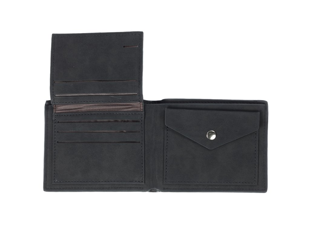 Peněženky jsou vyrobeny z kvalitní syntetické kůže a jsou velmi příjemné na dotyk. Členění peněženky: - 5 přihrádek na karty - 1 průhledná přihrádka na fotky nebo doklady - 2 přepážky na bankovky - 1 velký mincovník - Rozměry: 12 x 9,5 x 3 cm - Materiál: syntetická kůže - Barva: černáDoplňkové parametry