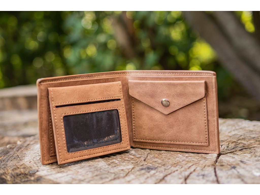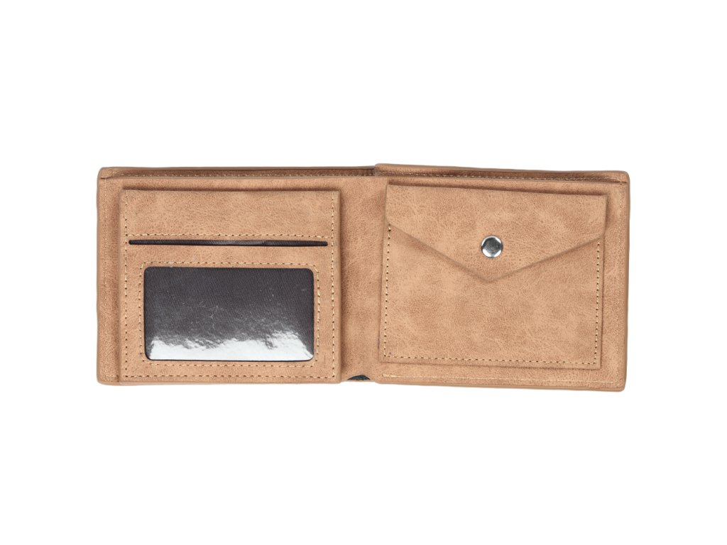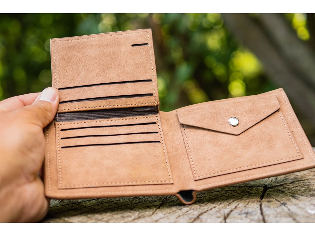 Peněženky jsou vyrobeny z kvalitní syntetické kůže a jsou velmi příjemné na dotyk. Členění peněženky: - 5 přihrádek na karty - 1 průhledná přihrádka na fotky nebo doklady - 2 přepážky na bankovky - 1 velký mincovník - Rozměry: 12 x 9,5 x 3 cm - Materiál: syntetická kůže - Barva: světle hnědáDoplňkové parametry