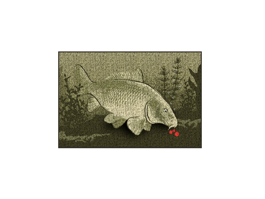 Excelentní rohož CatchMe! KAPR. Určitě potěší každého rybáře. Tato rohož je vyrobena z odolného materiálu, okraj je obšitý hnědým šitím a ze spodní části je ošetřena latexovou vrstvou. Rozměr 60x40 cm je velmi kompaktní a hodí se před všechny vstupní dveře. Ukažte návštěvě už u vchodu kdo je doma pánem :) Unikátní dizajn zobrazující kapra určitě zahřeje srdce nejednoho kapraře.Doplňkové parametry