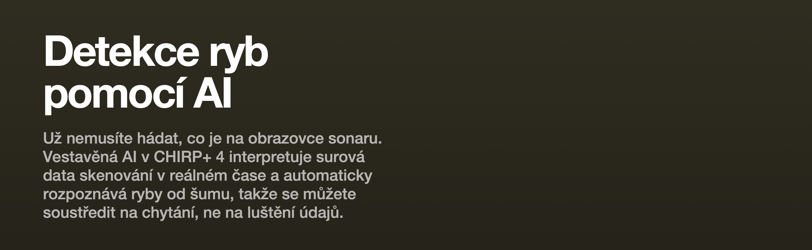 Už nemusíte hádat, co je na obrazovce sonaru. Vestavěná AI v CHIRP+ 4 interpretuje surová data skenování v reálném čase a automaticky rozpoznává ryby od šumu, takže se můžete soustředit na chytání, ne na luštění údajů.