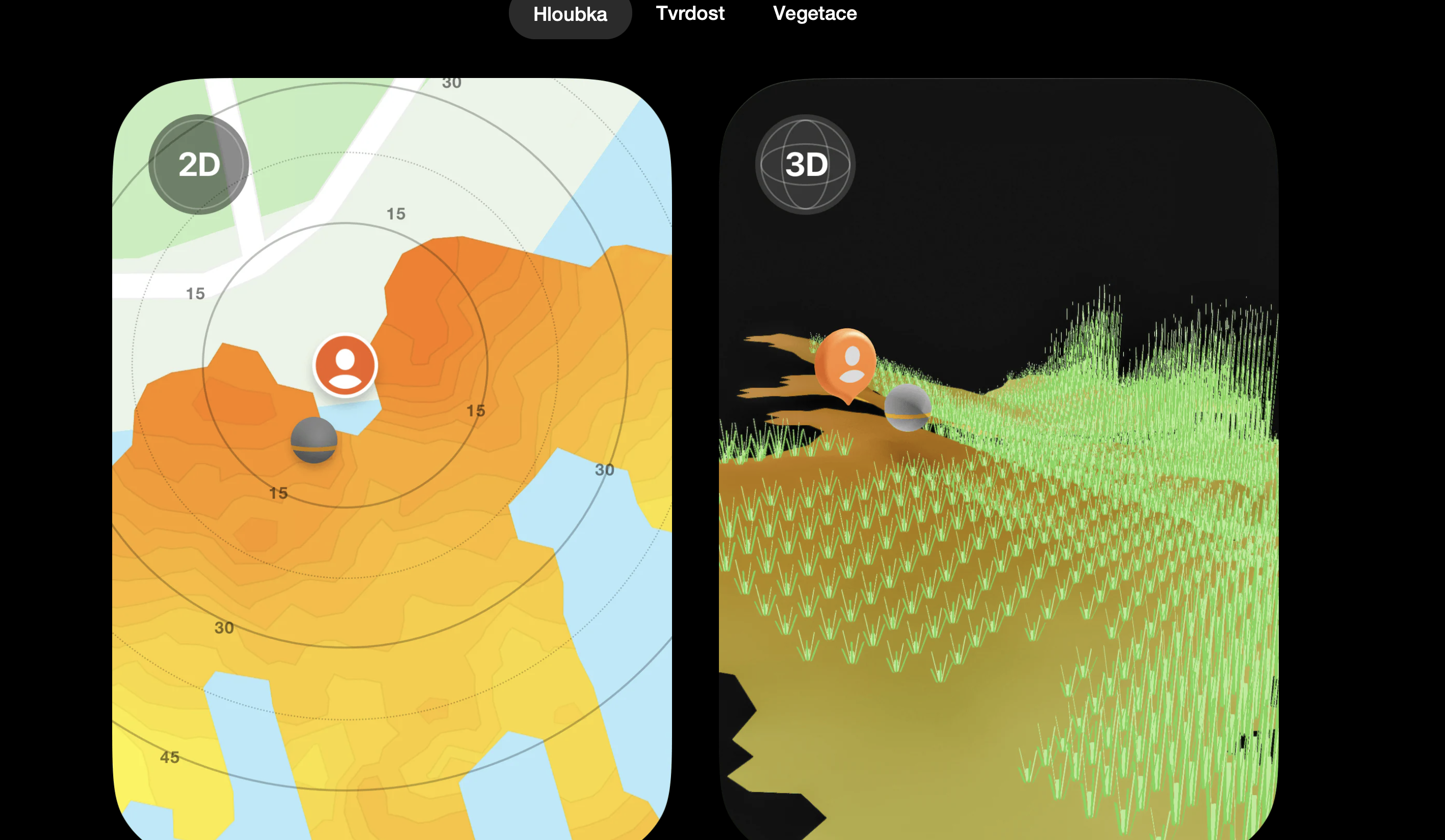 S CHIRP+ 4 můžete vytvářet osobní mapy tvrdosti dna ve 2D i 3D, které přesně ukazují, kde tvrdý štěrk přechází do měkkého bahna.