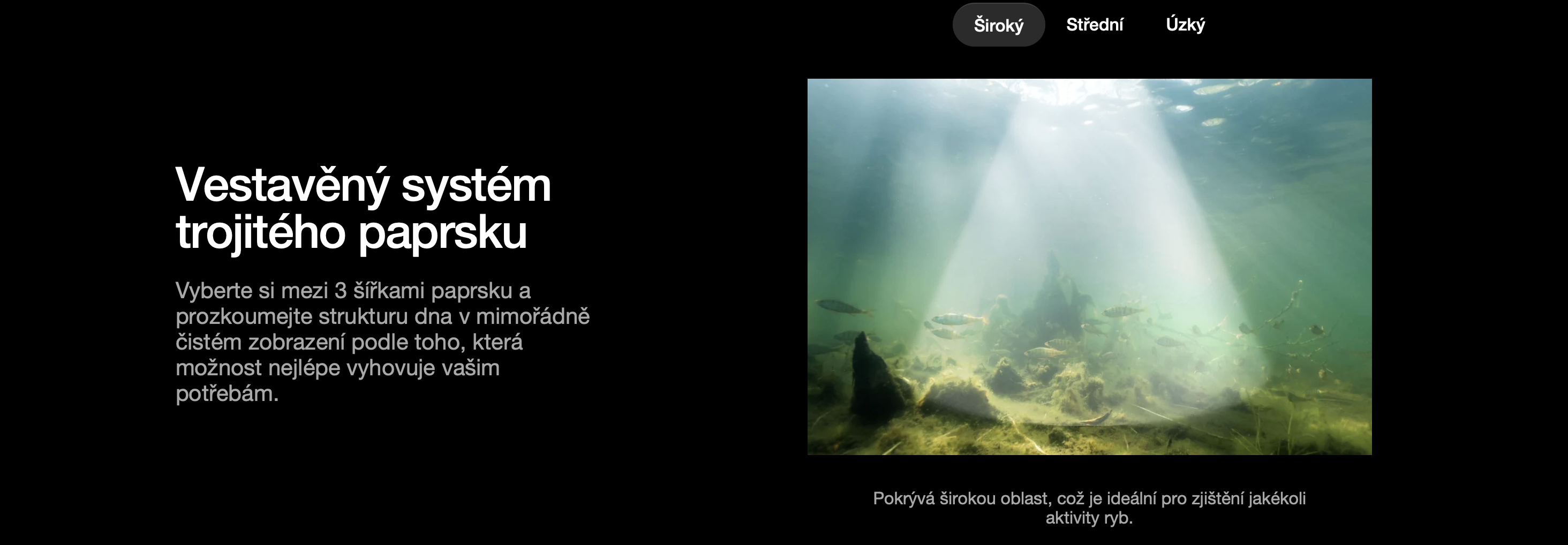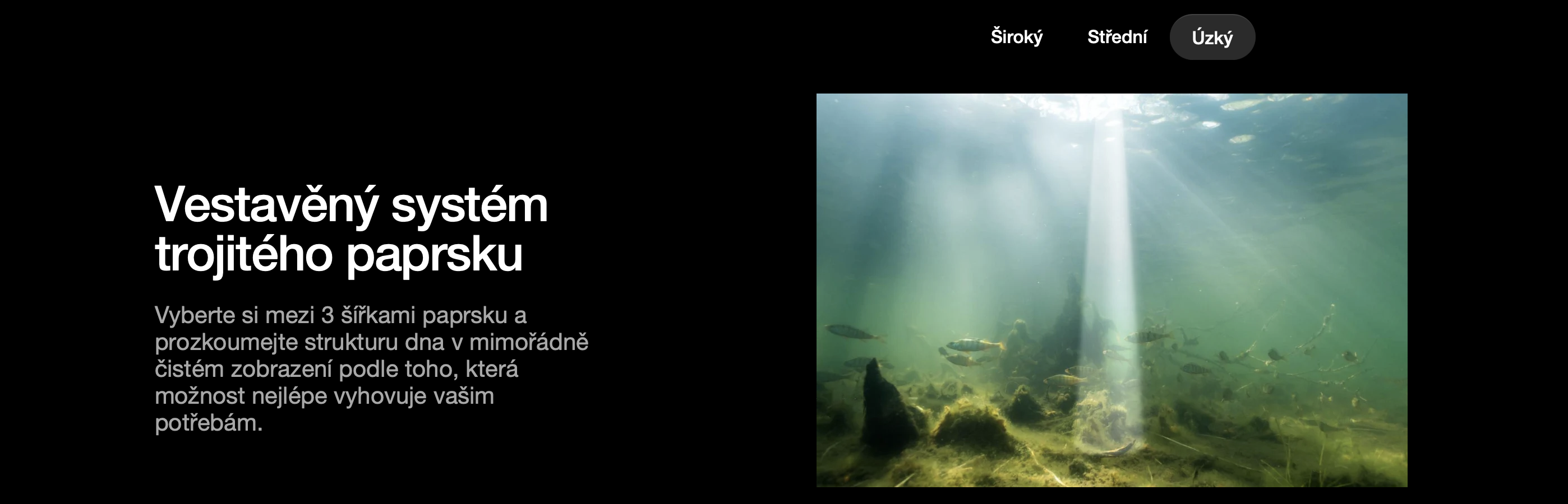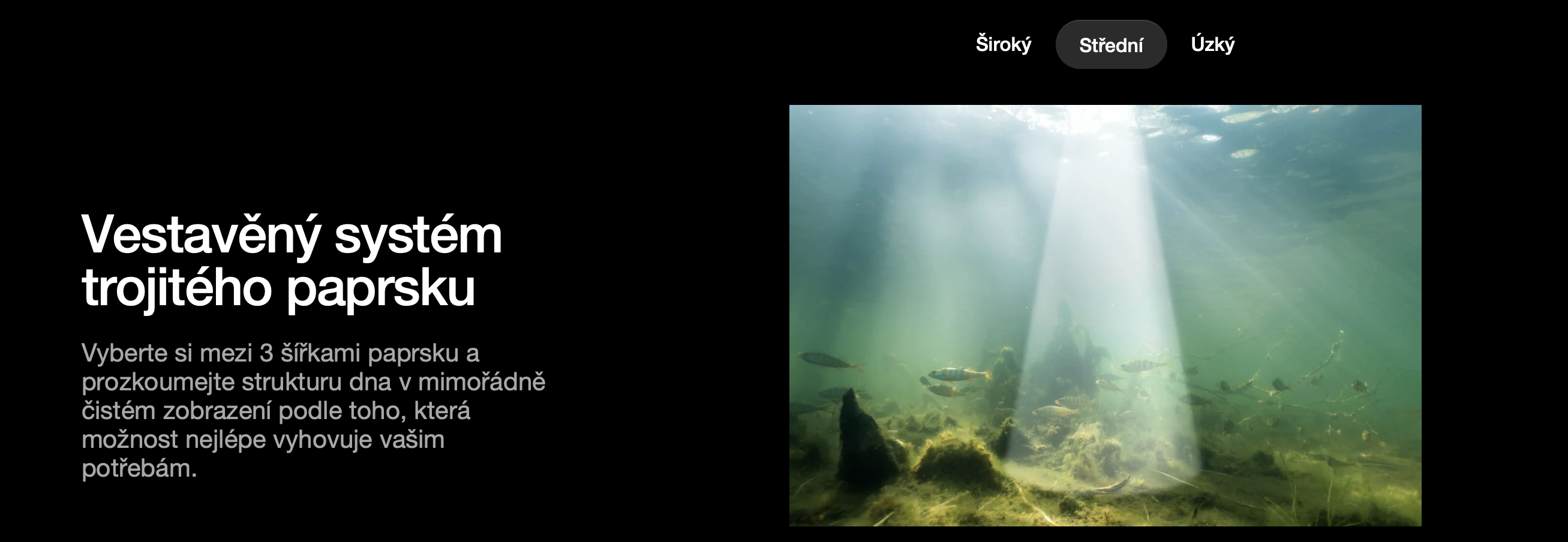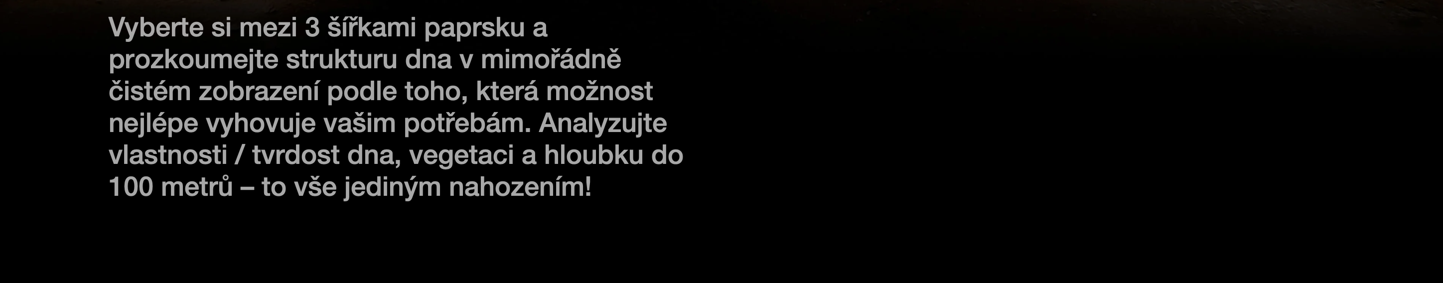 Vyberte si mezi 3 šířkami paprsku a prozkoumejte strukturu dna v mimořádně čistém zobrazení podle toho, která možnost nejlépe vyhovuje vašim potřebám. Analyzujte vlastnosti/tvrdost dna, vegetaci a hloubku do 100 metrů - to vše jediným nahozením.