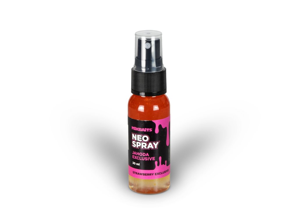 Neo spray je vysoce koncentrovaný tekutý postřik, kde jsou krom esence i koncentrovaná sladidla a chuťové stimulátory. Je určený zejména na zatraktivnění Fluo pop-up, Ronnie pop-up, pěnových Zig-up. Lze s ním i oživovat starší nástrahy. Neo spray je okamžitě nastartuje do původního stavu. Stačí zlehka postříkat a nechat v kelímku alespoň desítky minut absorbovat. Neo spray lze použít i na jiné nástrahy, jako je standardní boilie, pelety, partikl, rohlíkové boilie, extrudy a další. V těchto případech stačí nástrahu postříkat krátce před náhozem a nechat zlehka zaschnout.Doplňkové parametry