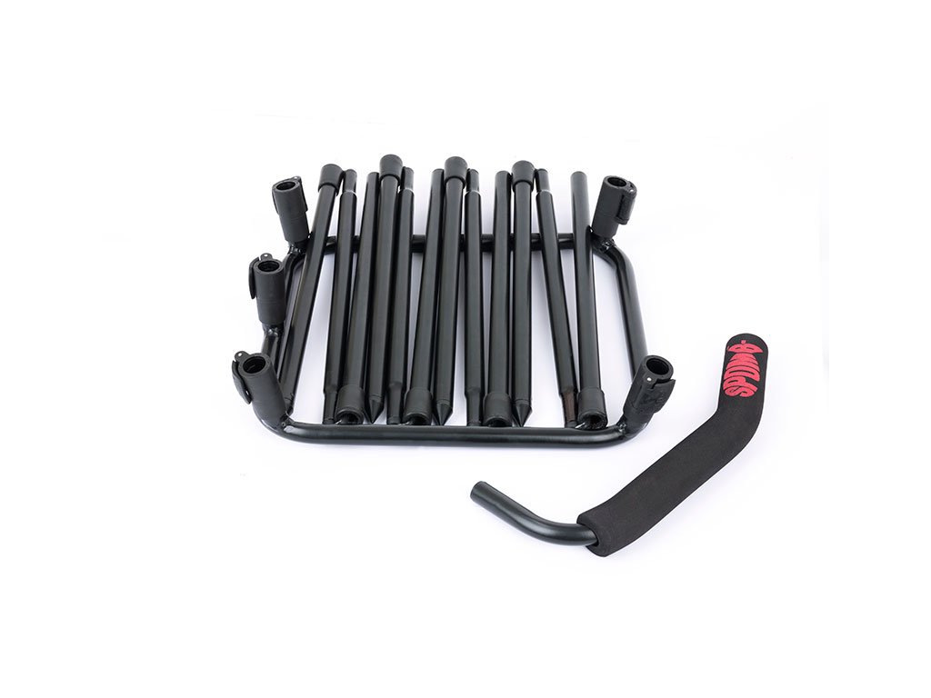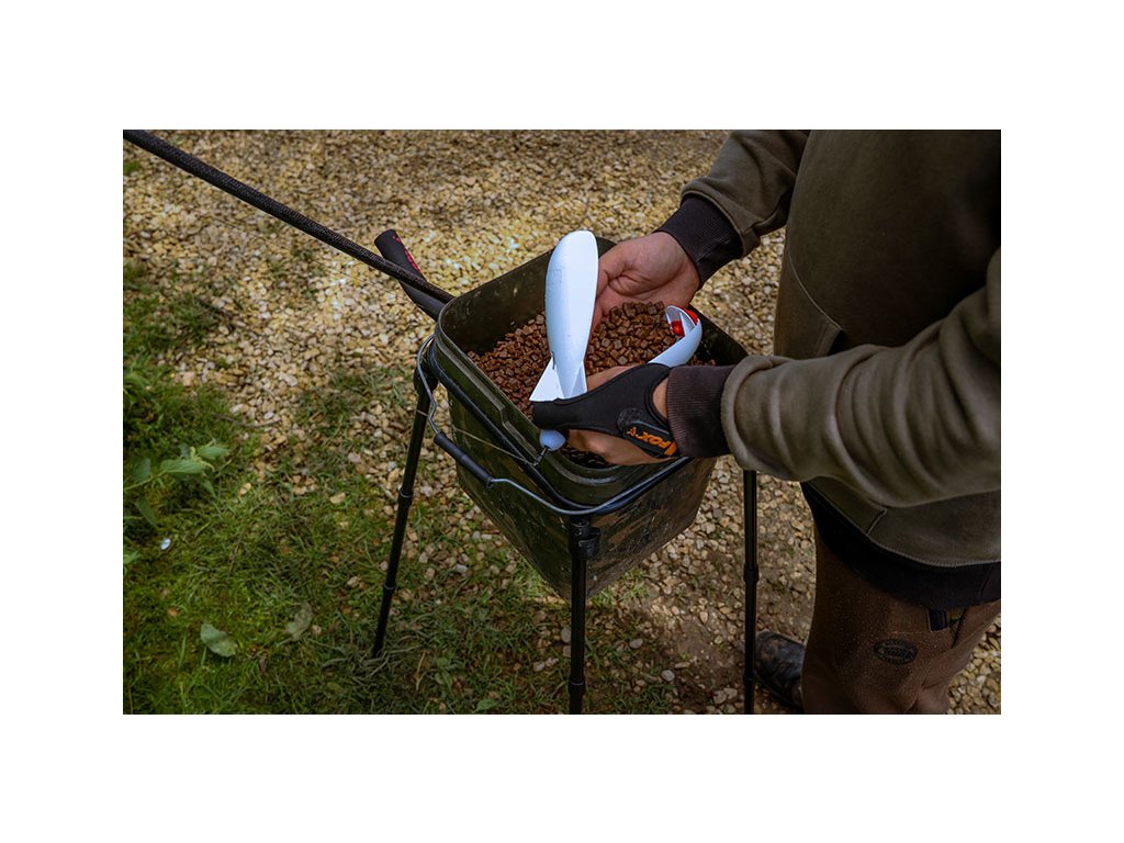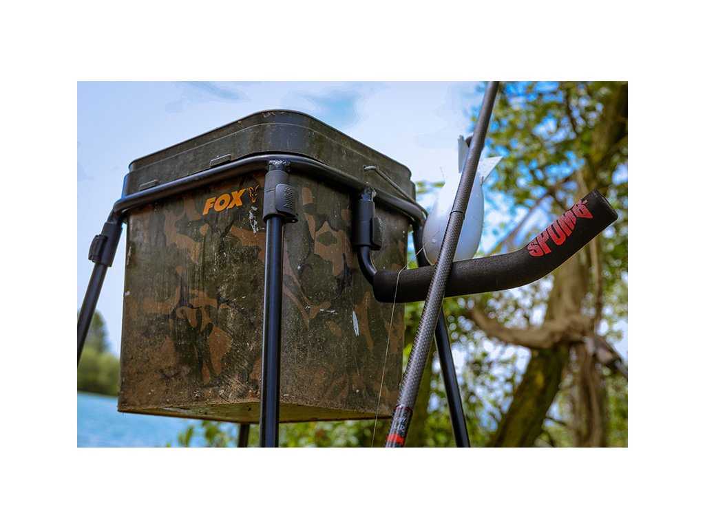 - Kompaktní set „vše v jednom“, který drží nádobu s návnadou v dokonalé výšce a šetří vaše záda, abyste mohli pohodlně plnit rakety Spomb™ nebo Fox Impact Spod™