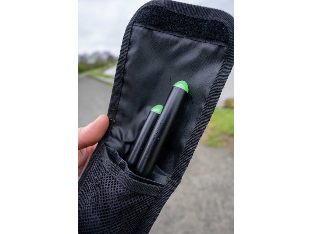 Tyčky jsou z lehkého hliníku s nite-glo vrchní částí a dodávají se v úhledném látkovém obalu.