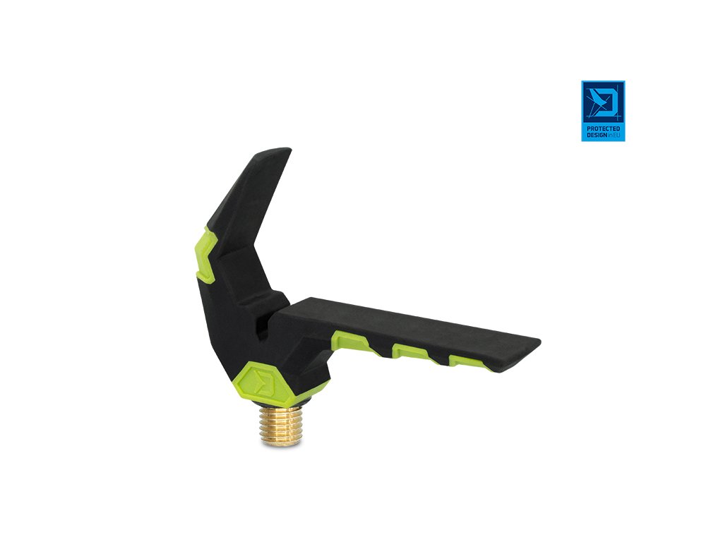 Přední feederový držák vysoké kvality v barvách inovativní feederové série Delphin Reaxe. Jeho speciálně navržený tvar s extra dlouhým ramenem zajišťuje dokonalé uložení prutu a zabraňuje jeho vytržení i při nejrazantnějších záběrech. Držák je opatřen drážkou pro volný přechod vlasce, pro maximální eliminaci tření. Povrch je potažen pogumovaným materiálem, který je extra šetrný k povrchu prutu a tím předchází jeho poškození. Držák je vyroben z odolných materiálů, takže se snadno nepoškodí a nepoškrábe. Univerzální závit umožňuje uchycení na všechna standardní ramena, stojany a vidličky. Na závitové části se nachází gumová podložka, která zamezuje otáčení držáku. Technické parametry: Celková výška: 55mm Celková šířka: 85mmDoplňkové parametry