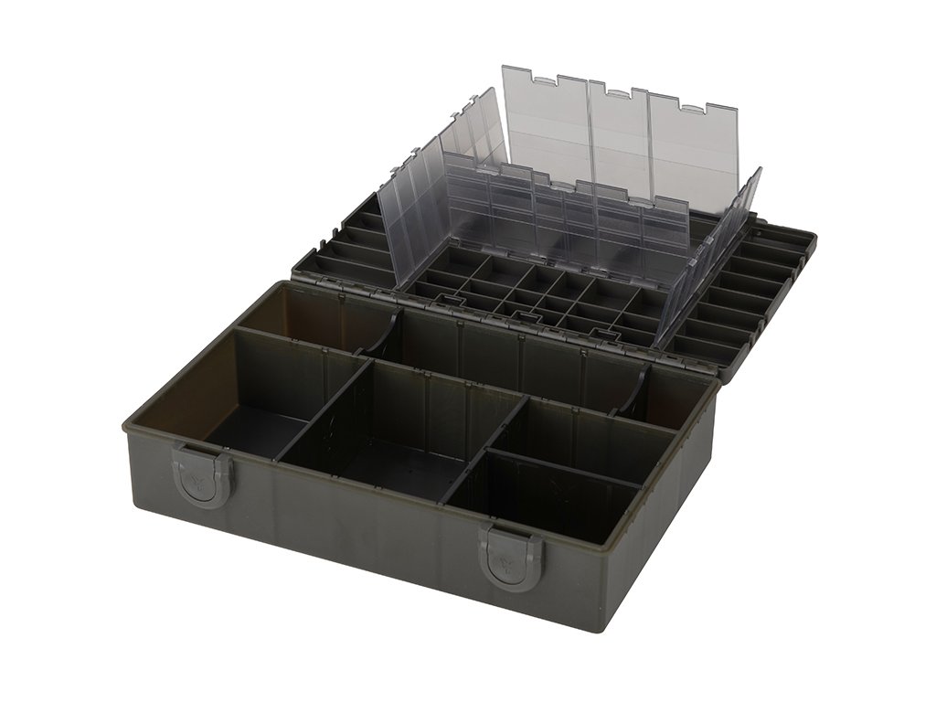 Nový řada Fox Tackle Box převzala koncept legendárních Fox F-Box, inspirovala se současným trhem a doplnila je novými nápady tak, aby je vrátila tak, kde bez pochyb patří na vedoucí pozici mezi úložnými boxy. Použitím celého víka jako dalšího úložného prostoru, jsme maximalizovali kapacitu, přesto zachovali box co nejkompaktnější. Víko se stává z 37 jednotlivých políček, s vylepšenými, panty a kouřově zbarvenými uzávěry, přes které je možné vidět obsah uvnitř. Součástí balení je I list samolepících štítků pro označení obsahu.