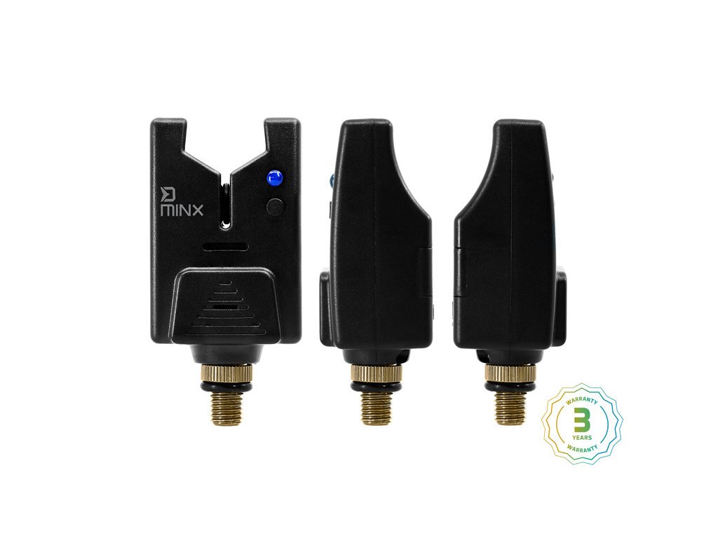 Stojan je zkombinován se dvěma kompaktními signalizátory Delphin MINX, které se kromě svých minimalistických rozměrů vyznačují skvělou výdrží baterie, spolehlivostí a velmi příznivou pořizovací cenou. Navzdory své ceně se však funkčností mohou bez problémů porovnat s podstatně dražšími modely. Velkou výhodou je také jednoduchost ovládání signalizátoru.