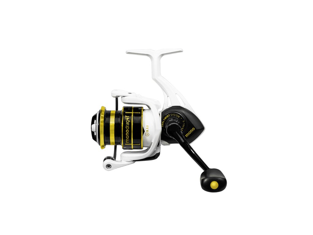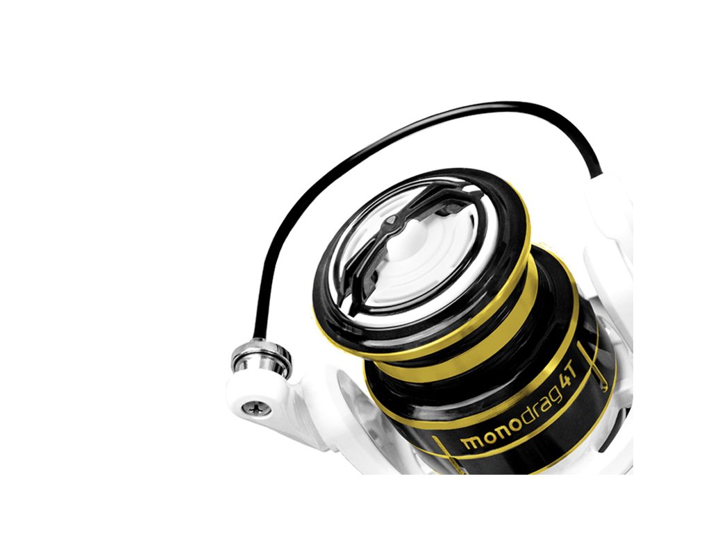 Delphin MonoDrag je kompaktní naviják s přední brzdou, charakteristický bílo černým designem s efektními zlatými prvky. Kromě svěžího designu rozhodně potěší i ideálním poměrem příjemné ceny a 100% funkčnosti. Samotný chod navijáku je velmi hladký a plynulý, na čemž má nepochybně největší zásluhu mechanismus s ideálním převodovým poměrem 5.1:1 a soustava 5+1 kuličkových ložisek. Pevné tělo zaručuje vynikající odolnost a dlouhou životnost navijáku. Pogumovaná rukojeť na klice dokonale sedne mezi prsty a umožňuje pohodlnou manipulaci během lovu. Výhodou je také odhozová hrana na kovové cívce, díky které budou vaše hody nejen přesnější, ale také o něco delší. Za účelem maximálně přesných hodů je možné využít také kovový klip na uchycení vlasce. Citlivá brzda disponuje dostatečně velkou silou potřebnou k zastavení unikající ryby. MonoDRAG je vyráběn ve velikostech 2T, 3T a 4T, díky čemuž si najde široké uplatnění ať už při lovu na feeder, splávek nebo při přívlači. Ke všem velikostem lze podle potřeby dokoupit náhradní kovové cívky. Technické parametry: Model: Delphin MonoDRAG 2T Kapacita navijáku mm / m: 0.14/200, 0.16/155, 0.18/130 Převodový poměr: 5.1:1 Počet ložisek: 5+1 Hmotnost: 245g Model: Delphin MonoDRAG 3T Kapacita navijáku mm / m: 0.16/210, 0.18/180, 0.20/145 Převodový poměr: 5.1:1 Počet ložisek: 5+1 Hmotnost: 280g Model: Delphin MonoDRAG 4T Kapacita navijáku mm / m: 0.18/215, 0.20/180, 0.22/140 Převodový poměr: 5.1:1 Počet ložisek: 5+1 Hmotnost: 300gDoplňkové parametry