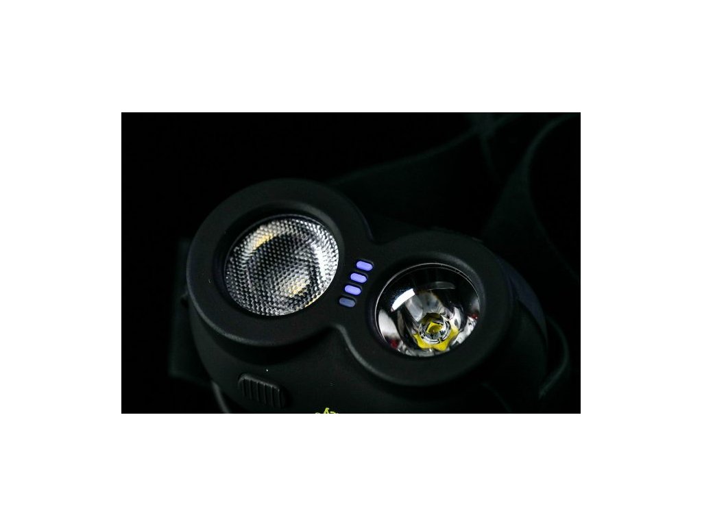 Jednoduše ji připojíte k jakékoliv USB nabíječce a máte vystaráno! Díky zabudovanému displeji máte stále přehled o stavu nabití čelovky. Obsahuje Li-ionové polymery, které zajišťují opravdu velkou výdrž a další skvělou vychytávkou je vnitřní plášť, který je odolný proti vodě s garantovaným atestem IP64. Vnitřní pouzdro VRH1500 USB s atestem IP64 bylo vyvinuto týmem předních návrhářů tak, aby zabránilo pronikání vody z jakéhokoliv směru. Od malého deště, až po přívalový slejvák. Tato jedinečná a důmyslná konstrukce vám zajišťuje maximální důvěru ve všech povětrnostních podmínkách! Dvojitá orientace : pomocí tlačítka napájení na obou protilehlých stranách čelovky a systému naklápění se širokým rozsahem lze VRH1500 používat oboustranně. Nikdy není vzhůru nohama. Jednoduše nasaďte VRH150 na hlavu a podle toho si nastavte funkci naklápění o 18 poloh a 90 stupňů. Kompatibilita s USB : Pryč jsou dny, kdy jste ve tmě hledali náhradní baterie nebo, což bylo ještě podstatně horší, jste zjistili, že již žádné nemáte. Pokud je stav nabití čelovky nízký, zapojte VRH150X do běžného nabíječkového adaptéru 5v USB a dobijte ji. Modrý čtyřstupňový displej vám ukazuje aktuální stav nabití. Výkon zeleného světla : jasnější pouhým okem, než běžný červený paprsek, který používá většina čelovek. Zelené osvětlení zajišťuje perfektní vztah mezi použitelností a vizuálním výkonem, protože lidské oko je více vnímavé k zelenému světlu. Vizuální čistota je mnohem vyšší i při nižším stupni světla v porovnání s červeným světlem. Je výrazně jemnější, než standartní bílý paprsek, přesto dostatečně jasný, aby poskytoval veškeré potřebné osvětlení. Zelený paprsek také pomáhá udržet schopnost nočního vidění. Vlastnosti produktu : • Trojitý vysoce výkonný LED výstup • Vysokokapacitní lithium-polymerová baterie 1400 mAh • Dvoubarevná, variabilní jas: 30–160 lumenů • Pět možností paprsků pro všechny situace: nízká bílá / zelená, středně bílá / zelená, vysoká bílá • Jednoduché ovládání pomocí tlačítka • Projekt registrovaný EUIPO • Doba nabíjení: 3-3,5 hodin • Životnost baterií @ 15C: až 80 hodin (v závislosti na nastavení) Odkaz na video: http://www.youtube.com/watch?v=8Bo_J892VBgDoplňkové parametry