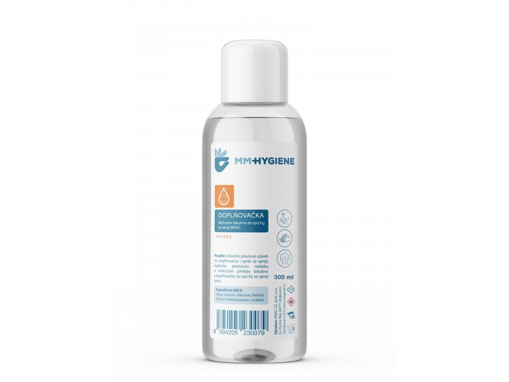 Náhradní tekutina do Sprchy ve spreji - Basic. Obsah 300 ml, možné 3x doplnit. Pozor, doplňovačku lze využít pouze pro doplnění Sprchy ve spreji - Basic, nelze doplnit Sprchu ve spreji - Klasik! Jedná se o náhradní tekutinu v obalu s uzavíratelným, šroubovacím víčkem.