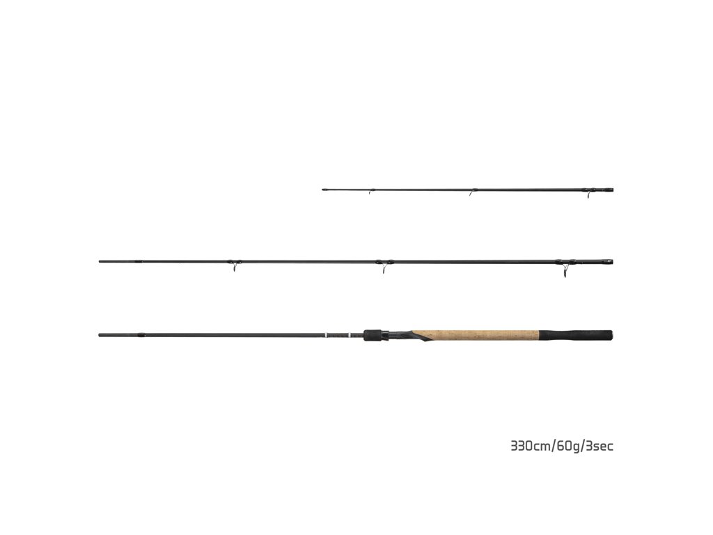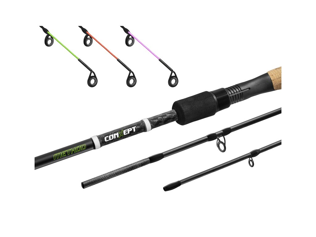 Method Conxept je feederový prut určený především příznivcům stále populárnějšího lovu pomocí method feederového krmítka. Tato řada prutů se vyznačuje kombinací citlivosti, jemnosti a zároveň dostatečné síly, která poskytuje všestrannost a vyváženost potřebnou pro plnohodnotný lov. Blank prutu je vytvořen z lehkého 24T karbonu, který dodává dostatečnou pevnost a odolnost a zároveň umožňuje konstrukci prutu o malém průměru a tím jeho nízkou hmotnost. Vyznačuje se parabolickou akcí, ideální pro plynulé nahazování a vychutnání si souboje s každou zdolávanou rybou. Progresivní akce prutu zároveň snižuje možnost vyváznutí ryby z háčku. Kombinace ergonomicky tvarované EVA pěny a korku na rukojeti poskytuje výborný úchop a příjemnou manipulaci s prutem i během častého nahazování a zdolávání. Samozřejmostí u tohoto modelu je také spolehlivé sedlo s předním závitem, do kterého lze upnout všechny standardní feedrové navijáky. Blank prutu je osazen přetvarovanými, dvoustopkovými očky se SIC výplní, které excelentně vedou vlasec či šňůru a zároveň zamezují jejich zamotání během nahazování. Díky jejich černé barvě vytvářejí spolu s matným blankem a korkem na rukojeti vyladěný sportovně-elegantní design, doplněný o svěží, bílo zelené prvky. Delphin Method Conxept vám nabízíme v různých délkách, vzhledem k individuálním potřebám každého rybáře. V základu je dodáván se setem tří špiček, které umožňují přizpůsobit citlivost daným podmínkám. Technické parametry: Model 330cm/60g Počet dílů: 3 Průměr blanku nad rukojetí: 11mm Počet oček: 11 Transportní délka: 116cm Hmotnost: 186g Rukojeť: EVA pěna Délka rukojeti (od spodní části prutu po střed sedla): 45cm Průměr špičky: 3mm Model 360cm/60g Počet dílů: 3 Průměr blanku nad rukojetí: 11,5mm Počet oček: 12 Transportní délka: 126,5cm Hmotnost: 220g Rukojeť: EVA pěna Délka rukojeti (od spodní části prutu po střed sedla): 48cm Průměr špičky: 3mm Model 360cm/60g Počet dílů: 3 Průměr blanku nad rukojetí: 12mm Počet oček: 13 Transportní délka: 136cm Hmotnost: 260g Rukojeť: EVA pěna Délka rukojeti (od spodní části prutu po střed sedla): 51mm Průměr špičky: 3mmDoplňkové parametry