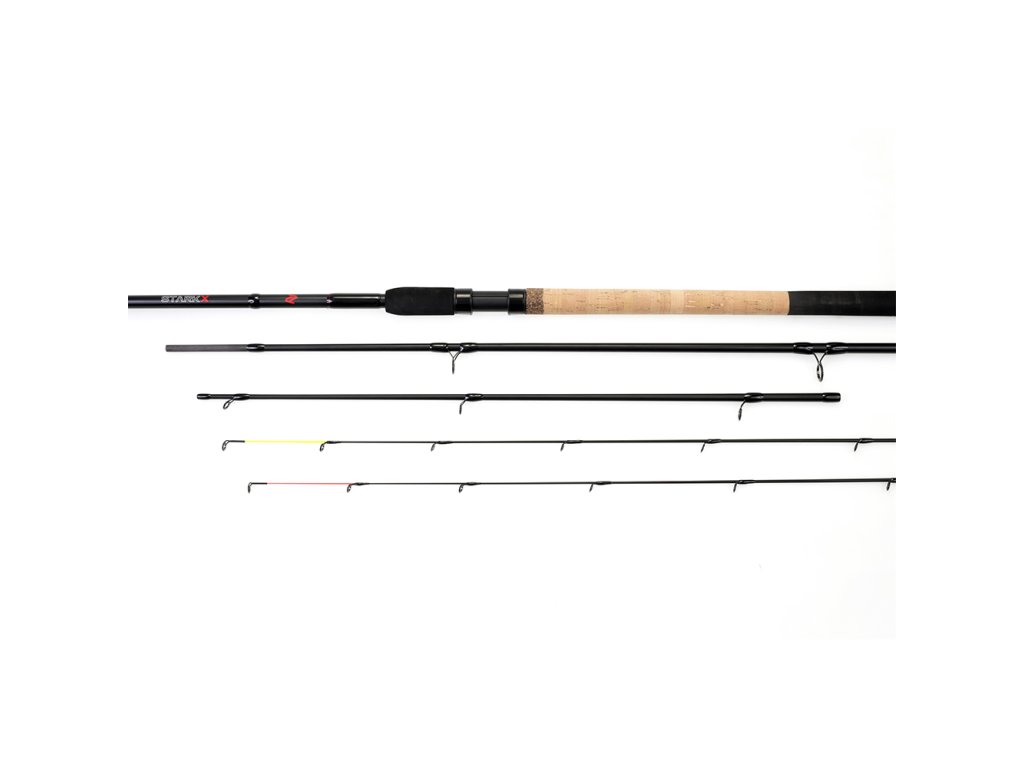 Pruty Starkx Method jsou navrženy pro nahazování těžkých krmítek. Tyto pruty jsou stavěny tak, aby vydržely dlouhé náhozy a zdolávání velkých ryb a jsou určeny pro lov na velkých revírech. Pruty byly dlouhodobě testovány při maximální možné zátěži a vyladěny k naprosté dokonalosti. Jsou opravdovou špičkou toho co jde v současné době v kategorii feederových prutů nabídnout. Jsou vyráběny v osmi různých modelech od velikosti MH do velikosti XXH s neskutečnou vrhací zátěží až 200g. Vlastnosti: • Vhodné pruty pro nahazování těžkých krmítek a lov velkých ryb • Blank vyrobený z čistého uhlíku • Vysoce kvalitní černá eloxovaná očka • Integrovaný držák háčku na prutu • Dvě karbonové 3,5mm špičky v sadě • Unikátní kombinace děleného korku a EVA rukojeti • Polomatný černý povrch • DPS sedlo navijáku s unikátním EVA zamykáním • K dispozici je šest různých modelů od 60g do 200gDoplňkové parametry