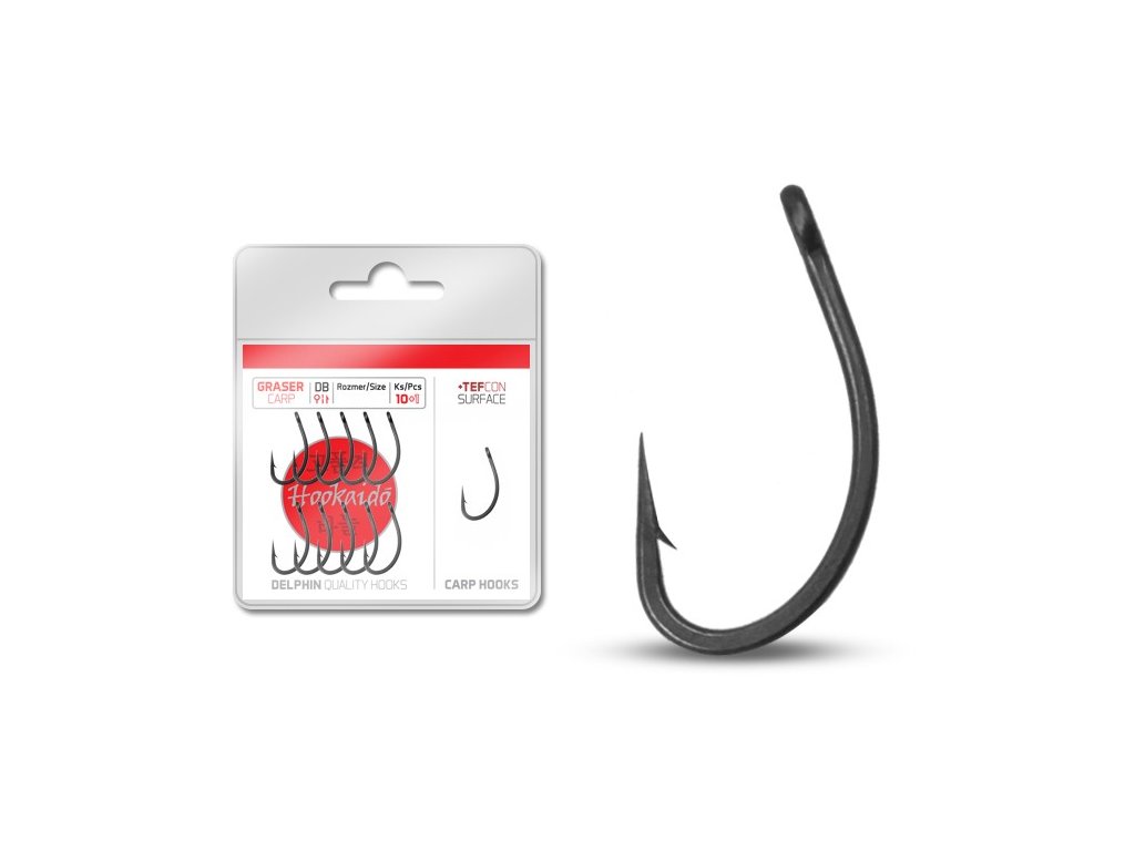 A Delphin HOOKAIDO fehér sorozatába tartozó horgokat kizárólag pontyok horgászatára szánták. A horgok a lehető legjobb tulajdonságokkal rendelkeznek. A legjobb minőségű alapanyagból készülnek, felületük pedig TEFCON réteggel van bevonva. A felület a horgok visszatükröződés mentes matt felületét biztosítja. Emellett a horgok jobb teljesítményéhez is hozzájárul. A HOOKAIDO sfehér színű sorozata a legellenállóbb pontyokkal is felveszi a harcot a horog nem kívánt elhajlítása nélkül. A legújabb élezési technikáknak köszönhetően a horgok hegye hosszabb idejű használat esetén is tökéletesen éles. A Delphin HKD GRASER rendkívül szilárd. Felépítése extrém akadályok közötti nehéz horgászatra alkalmas. Műszaki paraméterek: - füllel - ellencsúccsal - tengelyirányban egyenes - keresztmetszet: laposDoplňkové parametry