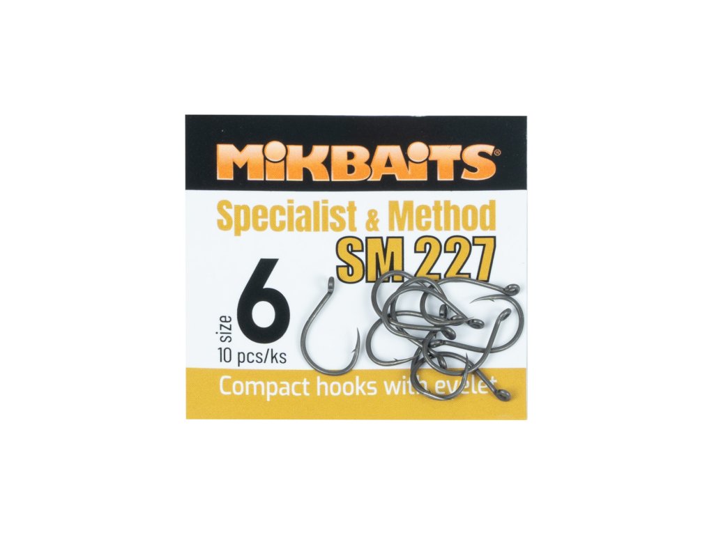 SPECIALIST & METHOD jsou kompaktní háčky s očkem malých rozměrů určené především pro lov menších a středně velkých kaprů, závodní lov, feeder, method feeder, lov středně velkých kaprovitých ryb, jako jsou parmy, líny nebo tloušti, a všude v situacích, kdy potřebujete dokonale ostrý, menší, ale přitom pevný háček. Jsou určené především pro vlasový přívěs, ale lze je použít i pro přímé napíchnutí měkčí nástrahy do obloučku háčku.Doplňkové parametry