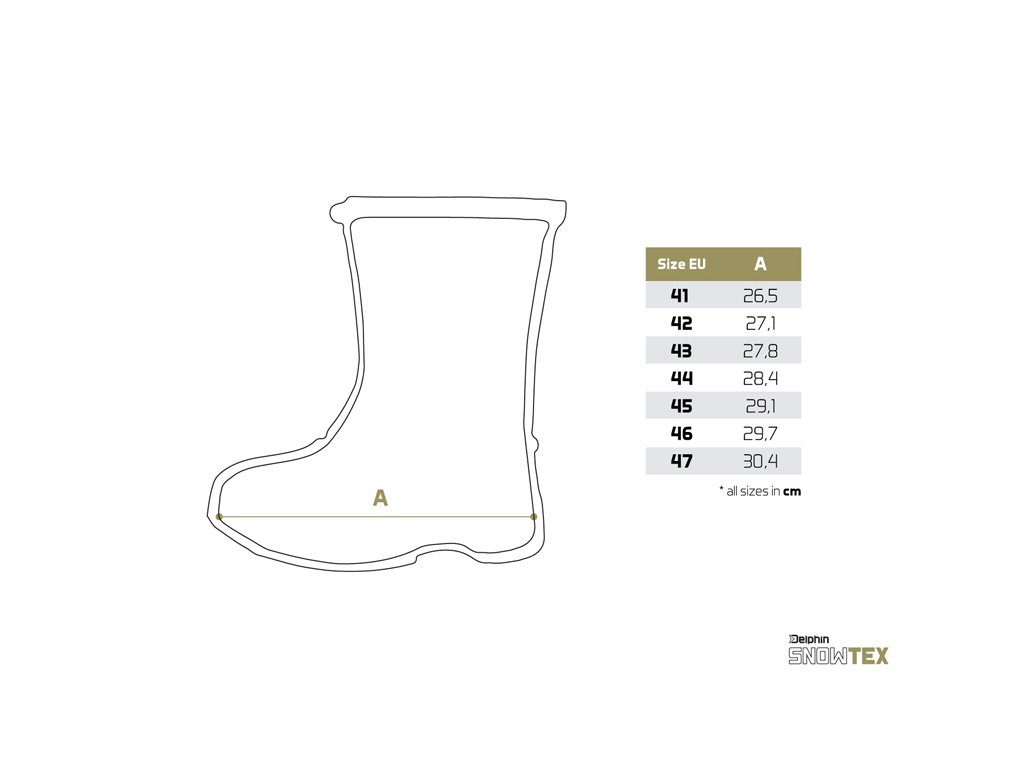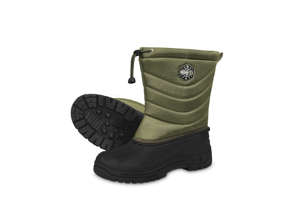 Vysoké zateplené boty SNOWTEX jsou ideální volbou do zimních zasněžených dnů, ale výborně poslouží i při sychravých, podzimních výpravách za rybami či při procházkách v přírodě. Zvýšený pryžový lem podrážky sahá až do výšky kotníků, to znamená, že vaše nohy zůstanou v suchu i během chůze v louži, rozbředlém sněhu či blátě. Pryžová část se navíc velmi dobře čistí a vzor na podrážce zajistí stabilitu i na kluzkých površích. Svršek boty je tvořen materiálem Oxford, který zajistí tepelný komfort i při extrémně nízkých teplotách. K tomu přispívá i na dotek velmi příjemný, fleecový materiál uvnitř boty a umělé mikrovlákno mezi vnější a vnitřní vrstvou. Takové provedení poskytuje pohodlí i při lovu na dírkách, kde se bota dostává do přímého kontaktu s ledem. Výška boty je navržena tak, aby zajistila odolnost vůči sněhu i při vydatné sněhové nadílce. Na vrchu boty se nachází lem s dotahovací šňůrkou, díky čemuž je nazouvání mnohem jednodušší a hlavně rychlejší. Černo-zelenou kombinaci materiálů ocení nejen rybáři, ale také myslivci, turisté a všichni ostatní milovníci přírody. I přes mohutnost bot jsou velmi lehké, což jistě přijde vhod při dlouhodobější chůzi nebo při celodenních vycházkách k vodě.Doplňkové parametry