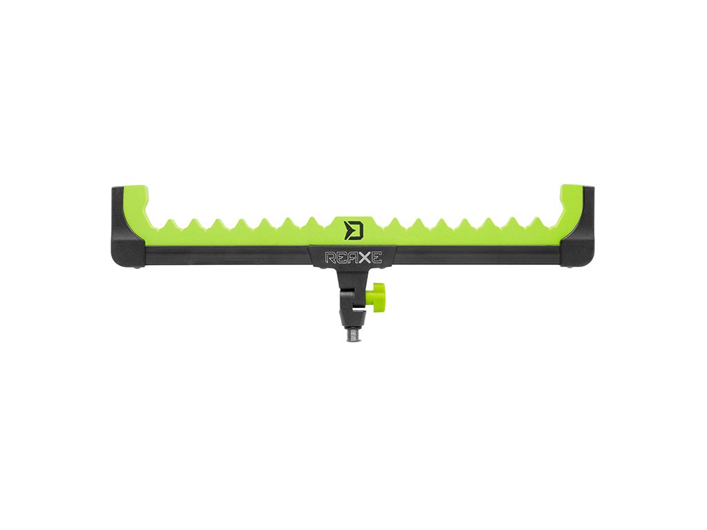 Praktický a variabilní přední feederový držák na pruty, nabízející skvělý poměr kvality a ceny. Je vyhotoven z EVA pěny vsazené v lehkém hliníkovém rámu, která obsahuje 16 speciálně tvarovaných výřezů pro prut s vlascem a tudíž nabízí možnost měnit jeho polohu pro zvýšení nebo snížení napětí na špičce. Držák je zároveň dostatečně dlouhý, což umožňuje použití dvou prutů najednou. Ve spodní části je na rám připevněn plastový kloub s otočným regulátorem, poskytující možnost polohování držáku v různých úhlech dle vašich potřeb a dle podmínek u vody. EvaFRONT disponuje také univerzálním závitem kompatibilním s většinou vidliček, feederových držáků a ramen. Barevně je držák laděn do černo-zelena a tím skvěle zapadne mezi ostatní produkty z řady REAXE. Technické parametry: Délka: 36cmDoplňkové parametry