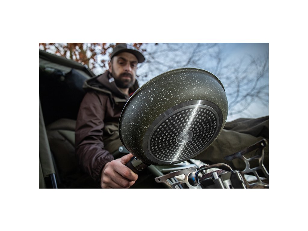 Je vyrobena z extra silného 2,5mm hliníku s nerezovou základnou a potažena dvěma vrstvami mramorového povlaku, který jí dodává profesionální vzhled a dokonale nelepivé vlastnosti. Pánve jsou navrženy pro všechny zdroje tepla, takže je využijete jak doma nebo u vody.
