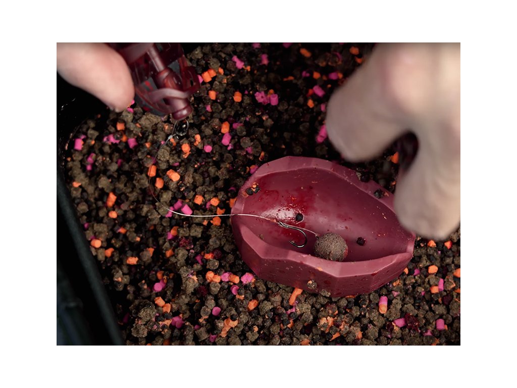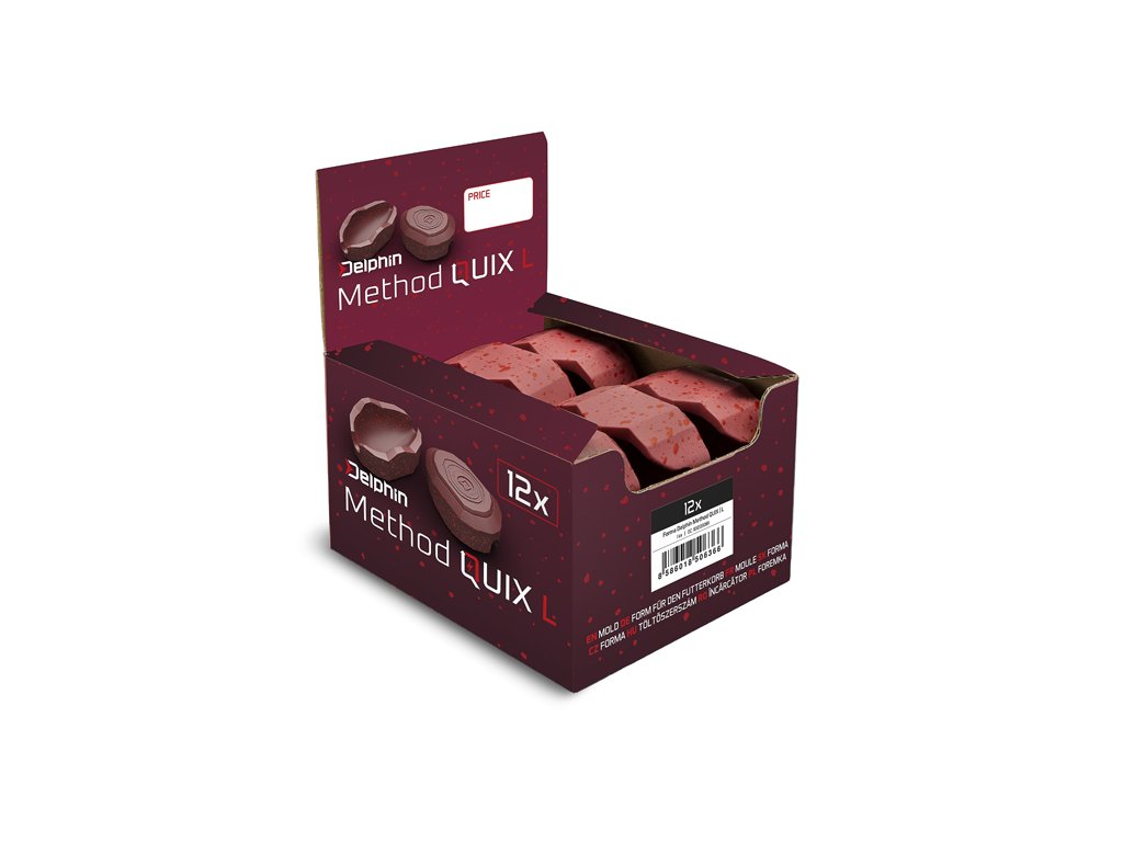 Důmyslně, do detailů propracovaná forma, se kterou bude naplnění krmítka a zároveň vytvoření dokonalé prezentace otázkou krátké chvíle. Díky poddajnému materiálu lze kontrolovat vynaložený tlak na obsah uvnitř a tím dosáhnout variabilní rozpadavosti krmení ve vodě. Zároveň lze formu jednodušeji odejmout z krmítka díky poddajným stěnám, ale zejména dvěma výstupkům po bocích, které výrazně usnadňují manipulaci. Ke snadnějšímu vybírání naplněného krmítka slouží i spodní strana s drážkami připomínajícími otisk prstu a logem Delphin uprostřed, čímž vás přesně vybízí k místu zatlačení, pro co nejjednodušší vyjmutí. Forma Method QUIX dokonale sedne na většinu dostupných modelů na trhu, ale bezvadně se hodí zejména k modelu krmítek Delphin Method Quix L. PROTECTED DESIGN - Tento produkt byl kompletně navržen designéry značky Delphin. Jeho design a technické řešení jsou natolik unikátní, že je registrován a chráněn na území celé Evropské unie.Doplňkové parametry