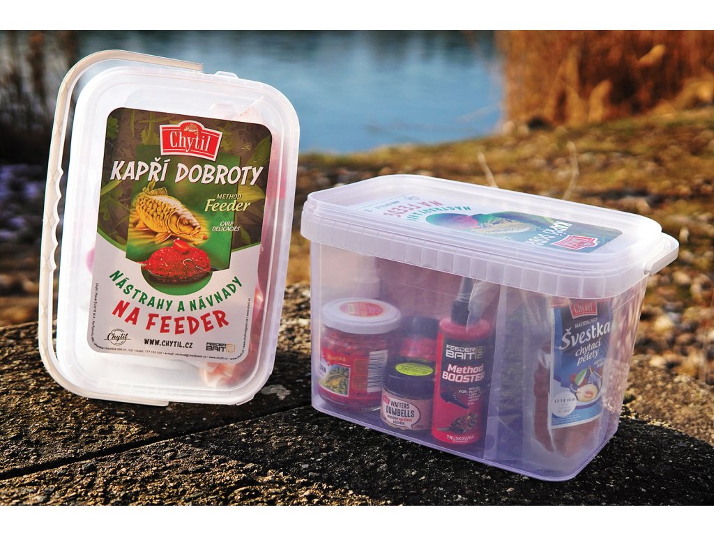 Tento kbelík a jeho obsah ocení především všichni rybáři, kteří chodí lovit ryby na feeder nebo method feeder. Uvnitř naleznete osvědčené nástrahy a návnady z produkce firem Chytil a FeederBaits.