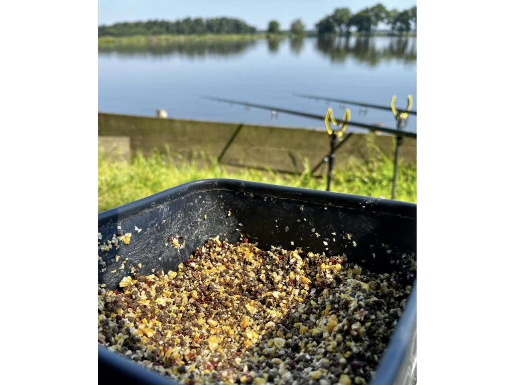 Klubová směs složená z vysoko-proteinových 2mm pelet a kukuřice, jejíž výrobní proces zahrnoval změkčení, lisování, drcení a výběr vhodné frakce. Po navlhčení a čekání 20 minut je směs připravena k rybolovu. Perfektně se vejde do krmítka a ve vodě funguje rychle.