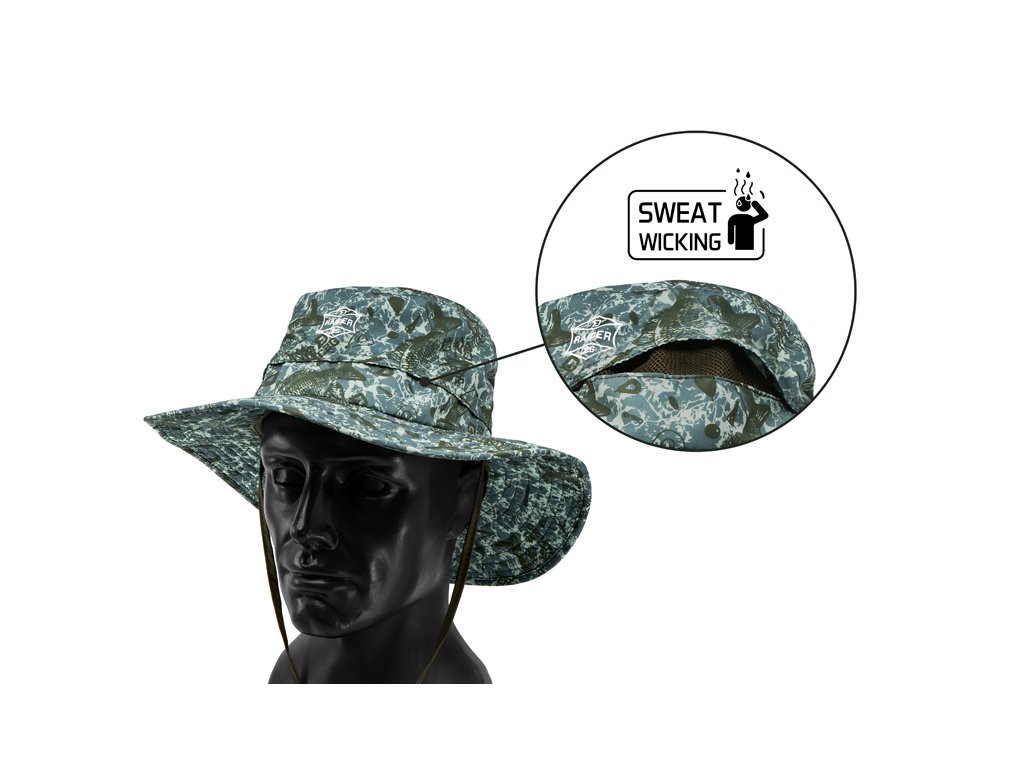 Delphin RAIDER je stylový klobouk v jedinečné C2G kamufláži, který poskytuje ideální ochranu hlavy během slunečných dnů, ať už se vydáte na ryby, lov nebo dovolenou u moře. Klobouk je vyroben z nylonového materiálu, který je z vnější strany kompletně potisknut C2G vzorem, čímž perfektně ladí s ostatními produkty z této série. Čtyři odvětrávací otvory znásobují uživatelský komfort a redukují nadbytečné pocení v oblasti hlavy. Kvůli lepšímu větrání a zabránění vniknutí hmyzu přes větrací otvory, je uvnitř našita praktická síťka. RAIDER disponuje také šňůrkou s jednobodovým stahováním, díky které vám z hlavy nespadne ani v případě silného větru. Materiálové složení: 100% nylon Průměr klobouku: 35 cm Průměr otvoru na hlavu: 19 cm Stylová patentovaná kamufláž z dílny značky Delphin pod označením C2G má mnoho podob a úhlů pohledu. Přesně tak i její název, který můžeme volně přeložit jako Carpath 2. generace, což přímo odkazuje na jejího předchůdce, ale můžeme ho číst i jako Carpath to Green, tedy přechod myšlenky Carpathu do zelené barvy. Její jedinečnost a nezaměnitelnost spočívá v prvcích, ze kterých je vytvořena. Na první dojem jde o kamufláž tvořenou třemi různými odstíny zelené. Všechno se však změní při detailnějším pohledu, kdy si všimnete siluety kaprů, komponent kaprařské montáže a log značky Delphin spolu s označením C2G. Díky tomuto neopakovatelnému provedení se vaše rybářská výbava okamžitě stane jedinečnou a maximálně originální.Doplňkové parametry