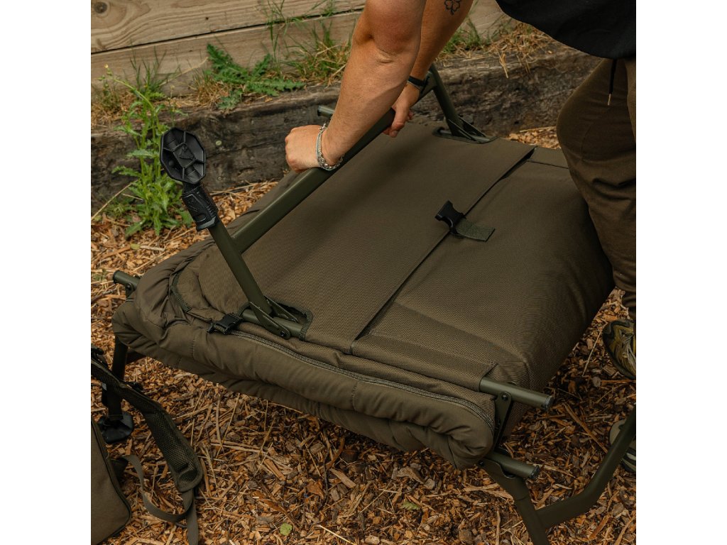 • Systém popruhů a přezek umožňuje kompaktní sbalení postele i se spacím pytlem.