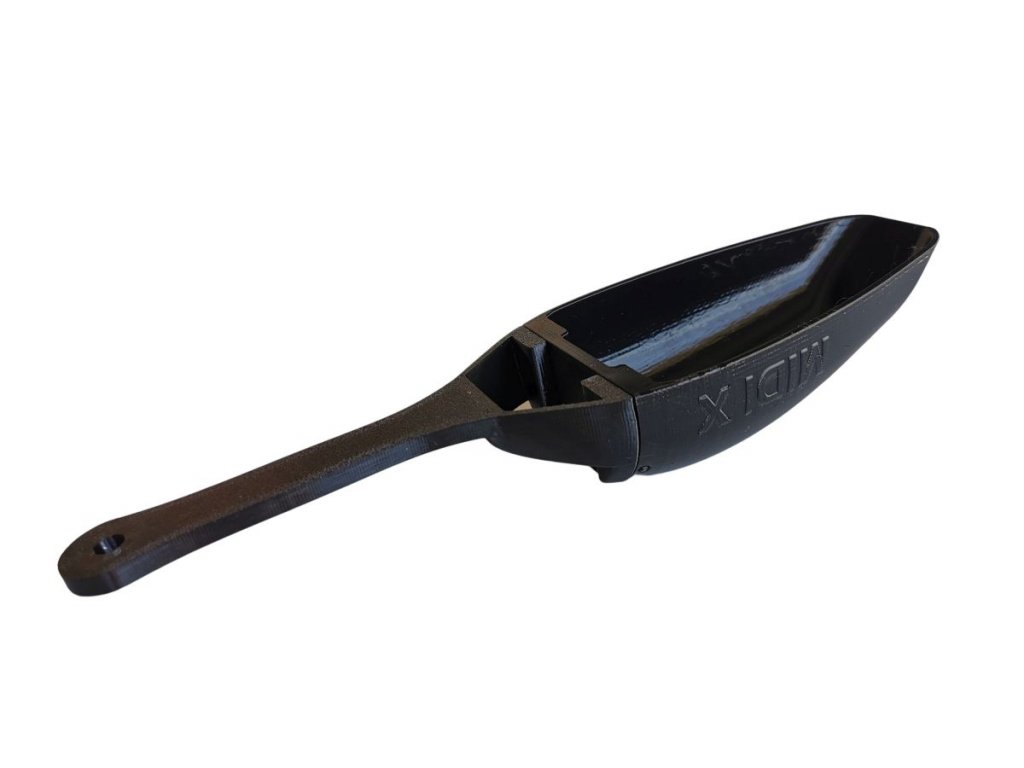 Lopatka tohto tvaru sa stáva najužitočnejším pomocníkom pri plnení krmných rakiet typu SPOMB Midi X vnadiacou zmesou (partikel, spod mix, boilies a pod.). Má totožný tvar ako raketa, takže pri plnení sa využíva každý gram krmiva a plnenie je účinnejšie.